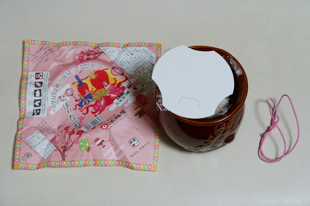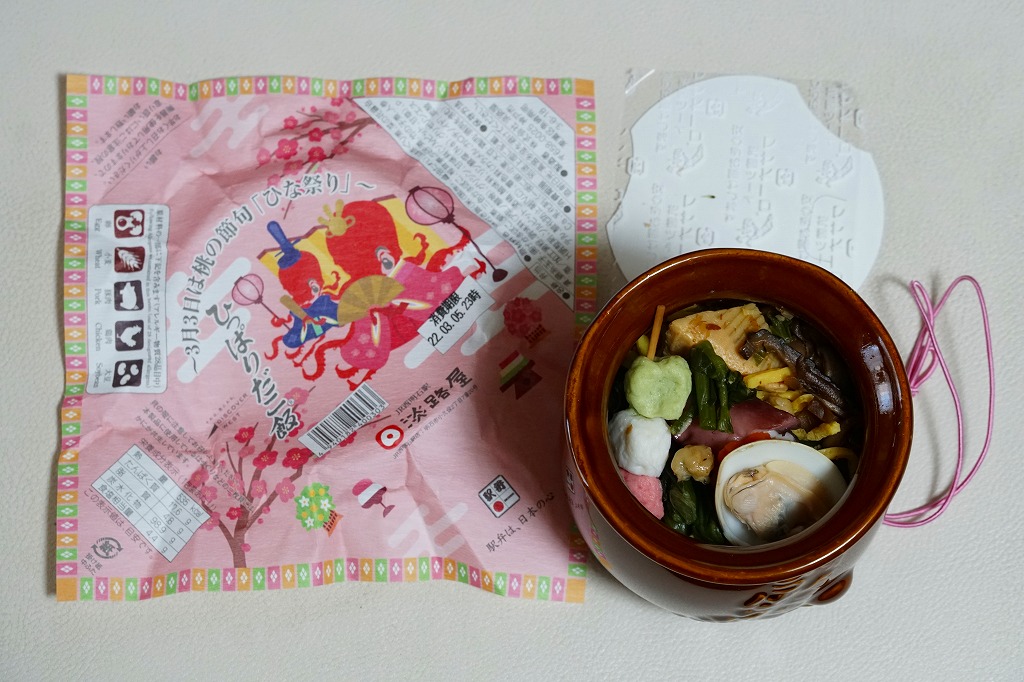 中身は茶飯をはまぐり煮、三色かまぼこ串、タコ煮、アナゴ煮とシイタケ煮の刻み、タケノコ煮、にんじん煮、菜の花醤油漬、錦糸卵で覆い、丸い揚げかまぼこを底に仕込むもの。通常版からタコを減らし、ハマグリとかまぼこ串を入れた感じで、その分だけ味が少し柔らかい。2022年は2月26日から3月5日まで1,200円で販売、2023年は3月1日から3日までの販売。2024年は1,350円、2025年は1,380円。