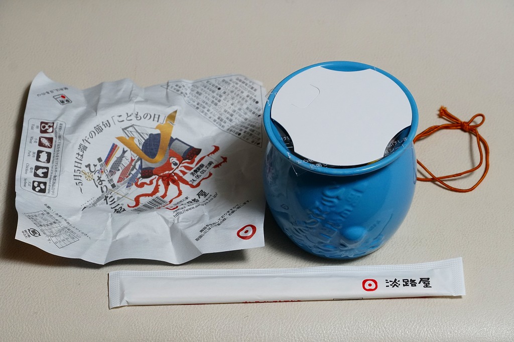 2022(令和4)年4月28日から5月5日まで、京阪神エリアや東京駅や通信販売などで販売。以後は毎年5月3日から5日まで販売。5月5日のこどもの日にちなみ、掛紙ではタコが兜(かぶと)をかぶり、タコツボ型の陶器は水色になり、中身にカボチャを加え、ニンジンを兜型にした。掛紙は両面印刷であり、指示どおり組み立てると掛紙のタコがかぶるものができるはず。価格は2022年の発売時で1,300円、2024年は1,380円。