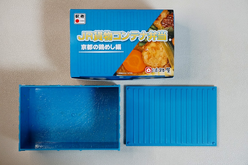 2025(令和7)年1月4日に発売。2022年1月の神戸のすきやき編、2023年1月の明石の鯛めし編、2024年1月の京都の鶏めし編に続く、JR貨物コンテナ弁当の第4弾。今回も実在するJR貨物の鉄道貨物輸送向けコンテナ「19D−31201」の、2007年の製造時で一般的だった塗装を模したプラ容器を、同じ絵柄の紙箱にぴったり収める。