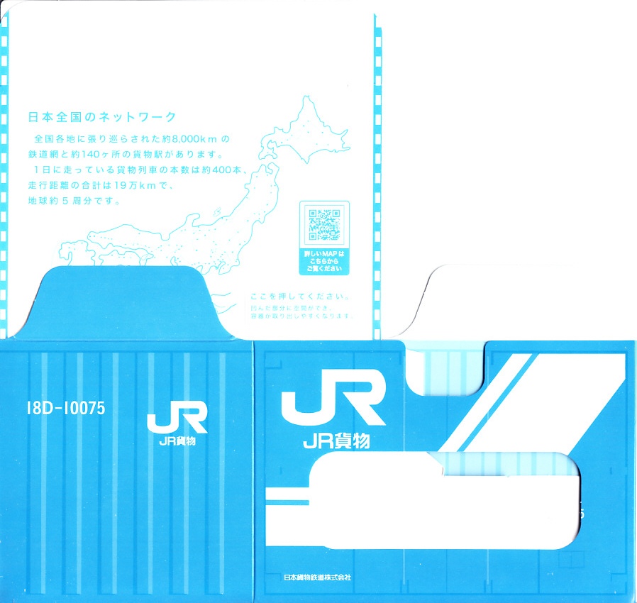 1987年の国鉄分割民営化で全国1社の貨物鉄道会社として生まれたJR貨物が鉄道コンテナを新製する際、国鉄末期に製造したコンテナで採用してJR貨物のコーポレートカラーにもなった青色に、白い線と会社のロゴマークを大きく記したデザインに塗り、新たな会社をアピールした。1992年に赤紫色と新たなロゴマークに切り替えるまで、約3万個のコンテナが世紀末のJR線を走った。この青色のコンテナは2013年までに全廃されたそうで、今は線路上では見られない。