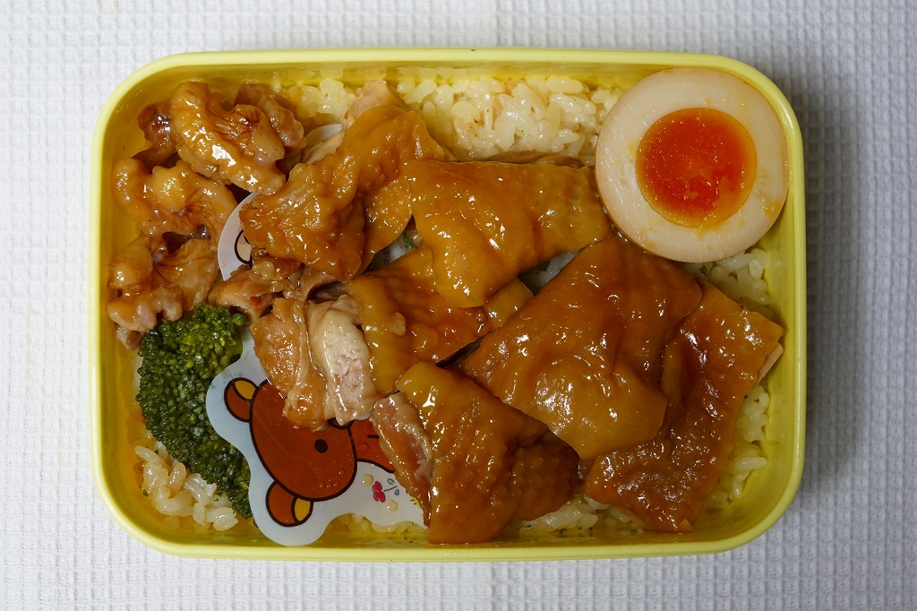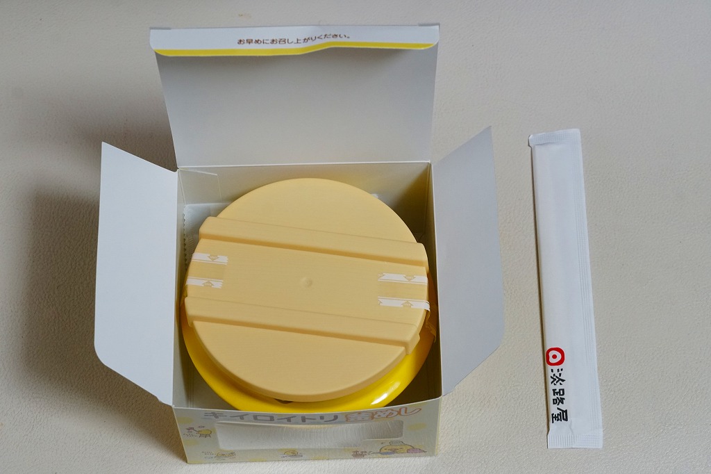 飯に玉子を貼り付けただけで「オムライス」と呼べるのかな、とか、冷蔵で食べる内容ではないな、と感じた。しかし、タッパー状の弁当箱は、これ単独で雑貨屋やホームセンターで販売されていてもおかしくないくらいのレベルでできており、これはぜひ弁当箱として活用すべき。価格は2013年の購入時で1,050円、2014年4月の消費税率改定で1,080円。2015年までの販売か。