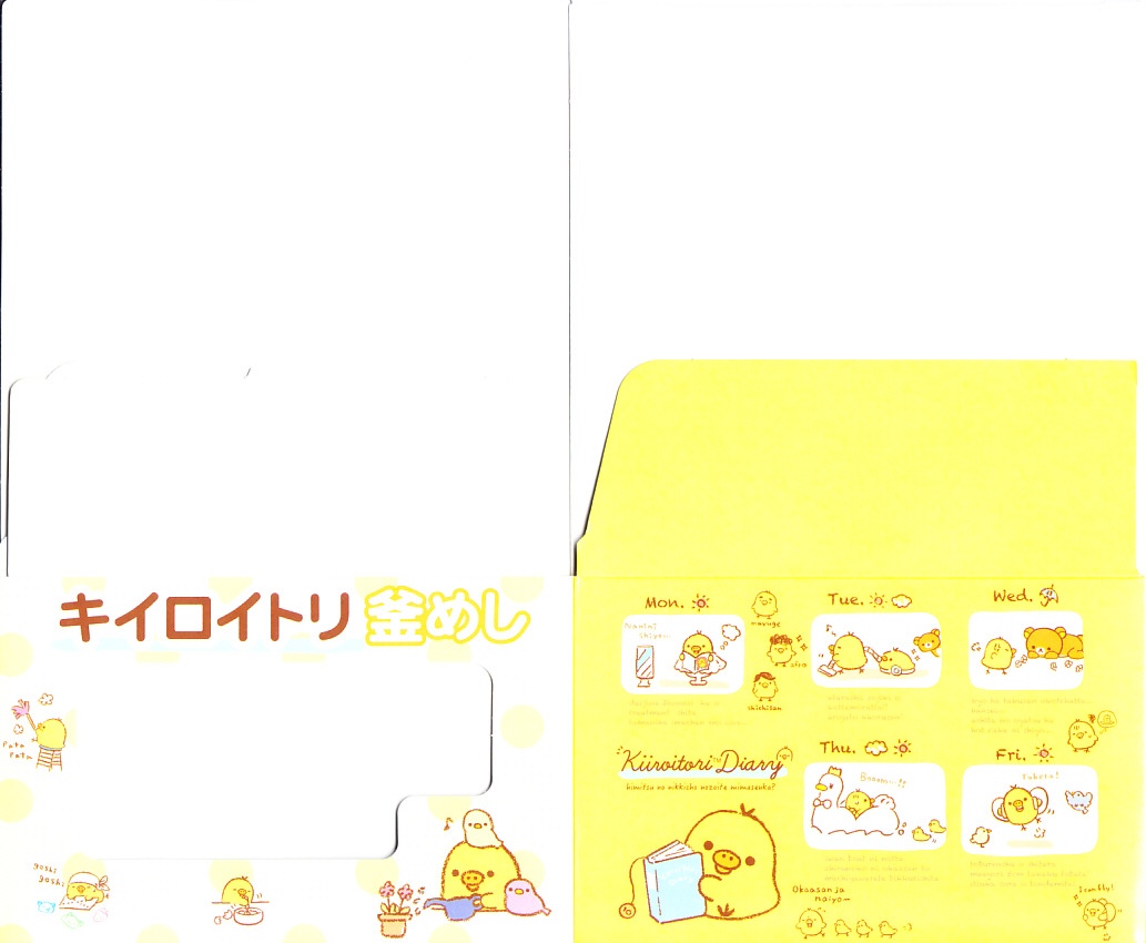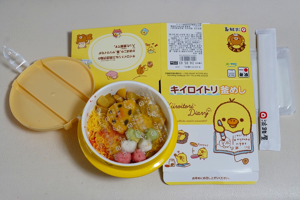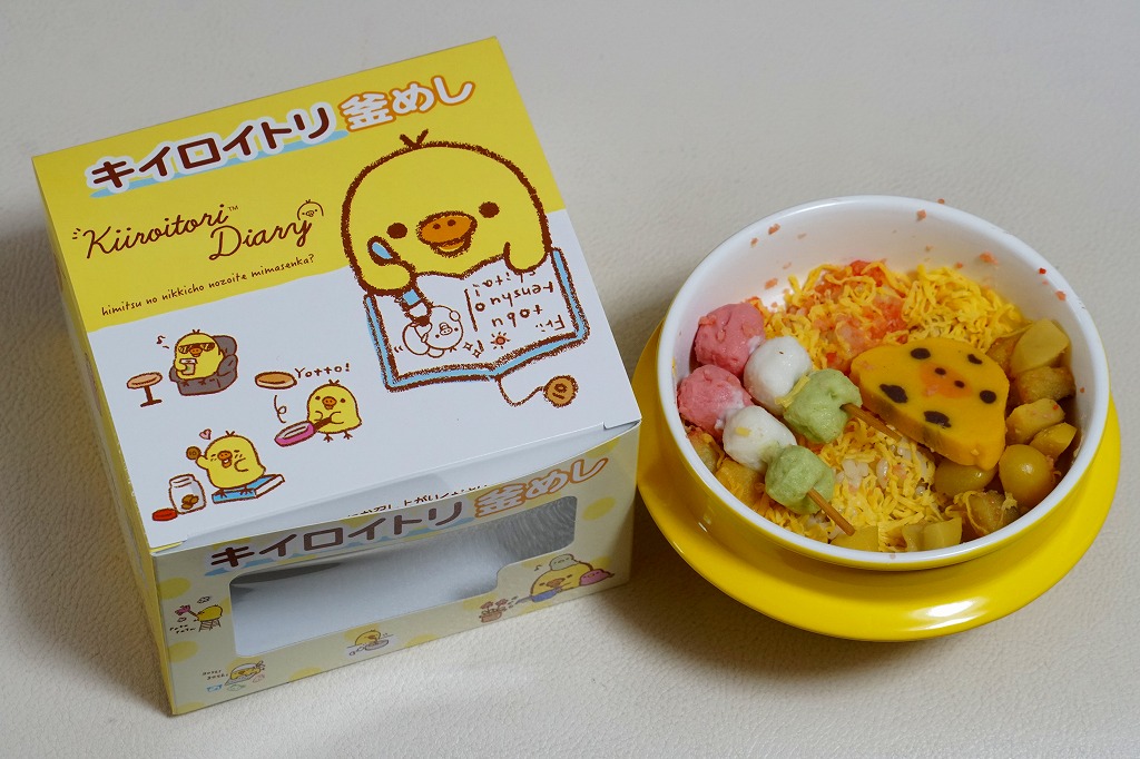2024(令和6)年4月1日に、新神戸駅や西明石駅などの調製元店舗と通信販売で発売。「リラックマだららん釜めし」以来、約8年ぶりに発売するリラックマコラボ釜めしとする。サンエックスのキャラクター「リラックマ」で、カオルさんがリラックマが来るよりも前に家で飼っているペットの鳥「キイロイトリ」が、釜飯タイプの駅弁になった。陶製の容器も、プラ製のふたも、これを収める紙箱も、すべて黄色い。この容器に炊込飯を詰め、錦糸卵と桜でんぶで覆い、キイロイトリ型のかまぼこ、三色かまぼこ2本、くり、さつまいも、ぎんなんで覆う。鶏肉は入らない。内容量は少なめ。おかずの手掛かりがなく甘い弁当を、食べ物でなくキャラクターの世界観で味わう。