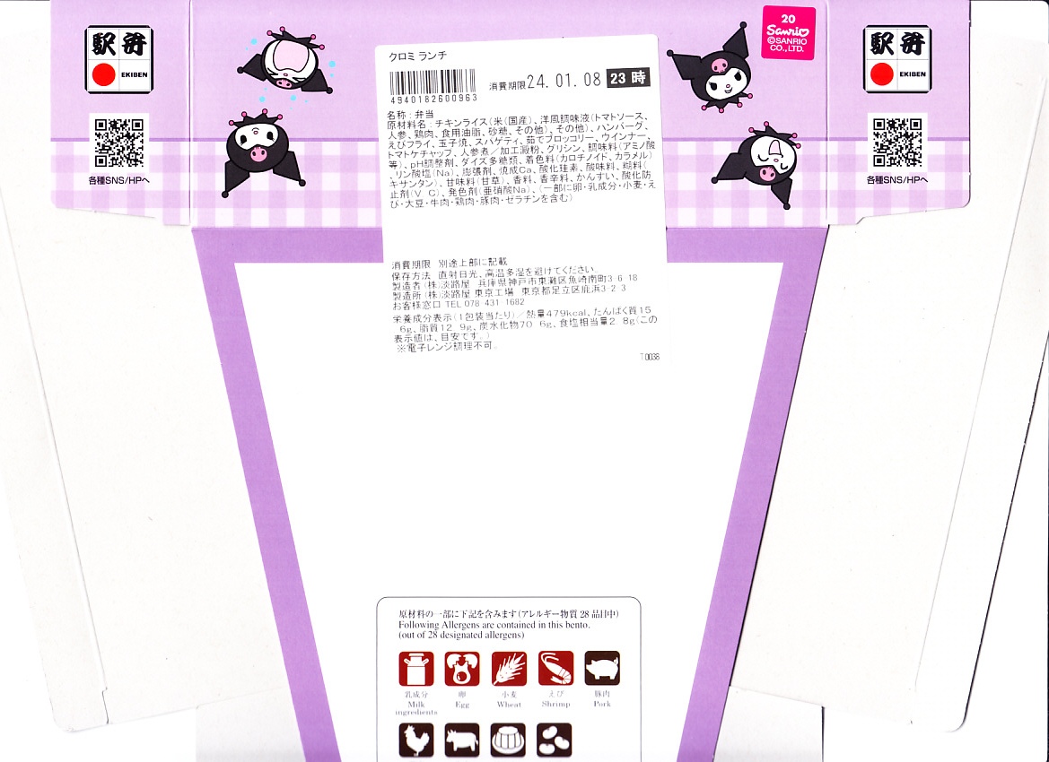2023(令和5)年12月13日に、新神戸、鶴橋、垂水の各駅などで発売。2005年に誕生したサンリオのキャラクター「クロミ」が、18年の時を経て駅弁になった。その全身像のプラ容器を、台形の大きな紙箱に詰め、その窓から顔が見える。中身は大きな顔にチキンライスを詰めて薄焼き卵で覆い、両耳にスパゲティとブロッコリーを配し、胴体にハンバーグとエビフライとウインナーを仕込み、トマトケチャップとハート型にんじんとキャラクターの紙片を添付。髑髏(どくろ)の印を持つ悪役であることを微塵(みじん)も感じさせない、明るいお子様ランチ。