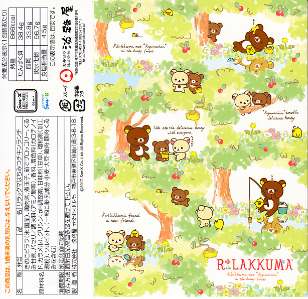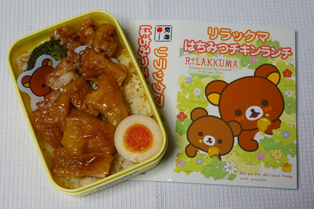 2017(平成29)年8月3日に発売。十数体のリラックマが描かれるスリーブに収めたリラックマ柄のタッパーに、きのこピラフを詰め、鶏肉煮で覆い、煮玉子、ブロッコリー、くるみ、リラックマのフィルムを添える。駅弁の名前のとおり、鶏がハチミツ味。この甘ったるさは慣れないときつい。ハチミツを使うため「1歳未満の乳児には、与えないで」という駅弁に稀な注意書きがある。2020年の春までに終売か。