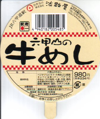 JR西日本のダイヤ改正に合わせて、2003(平成15)年10月1日に発売。六甲山をイメージしたという壷型の白い容器の中に、ベジタブルピラフと牛肉あぶり焼を詰めるといううたい文句。かなり強いバター味は若者向けで、しかし分量の少なさはお年寄り向けに思えるが、どんな客層に好まれるのだろう。またひとつ、神戸にユニーク容器の駅弁が加わった。まずは一日200個が販売される。2004年度のJR西日本の駅弁キャンペーン「駅弁の達人」の対象駅弁。現在は販売されていない模様。