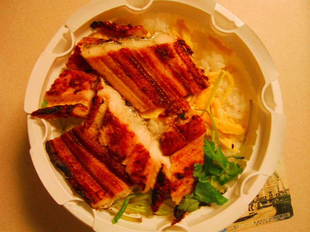 神戸の他の加熱機能付き容器駅弁でお馴染みの、八角形のパッケージに円形の容器を入れるが、そのパッケージはやや簡略化された新バージョンか。中身は白御飯の上に少量の錦糸卵と多量の穴子蒲焼を載せる。そのまま食べるといずれも硬いだけだが、指示通りひもを引いて温めた後につゆをかければ、タレの強くない穴子が口の中で溶けていくはず。