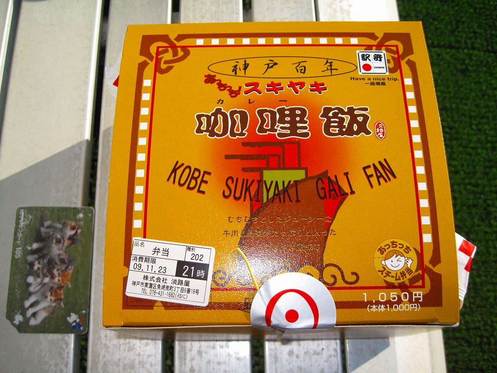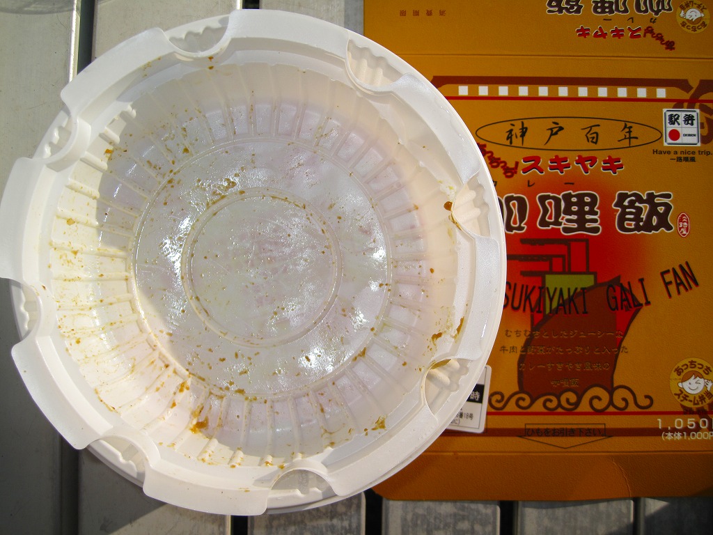 2009(平成21)年2月頃に発売か。円形の加熱機能付き容器を使用、これをカレー色のボール紙のパッケージに収める。中身は白御飯の上をカレー色に染まってカレー味のする牛肉煮、タマネギ煮、ごぼう煮、糸こんにゃくで覆い、いんげんとニンジンを添えるもの。これは調製元の得意料理に見えて、牛肉がザラザラしてとにかく固くてスジだらけであり、昔の安くて不味いカレーライスを思い起こさせるもの。ルーがあまり辛くなかったのは個人的には嬉しかったが、これも味としてはマイナスかもしれない。神戸の駅弁には珍しい駄作に感じた。なお、カレー飯の「カ」は、くちへんに加わるという文字を書く。現在は販売されていない模様。