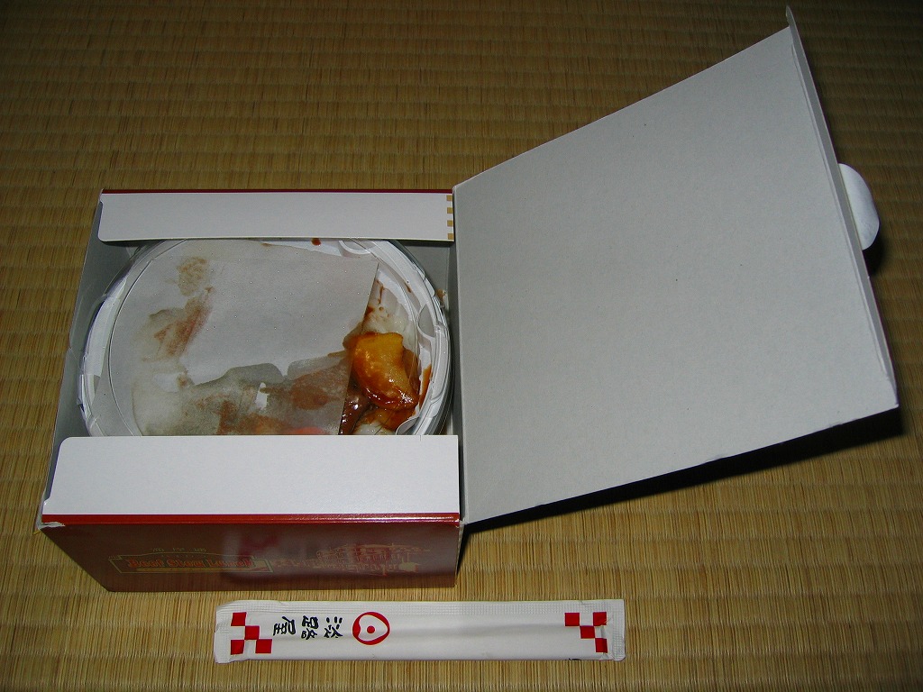 二重容器に発熱剤入りなので容器の大きさに対して量は少なく、特に牛タンが少ないのではと感じるが、ゼラチンの塊になるまで煮込んだ牛スジに、甘すぎず辛すぎない御飯などの味がそれをカバーする。現在は販売されていない模様。