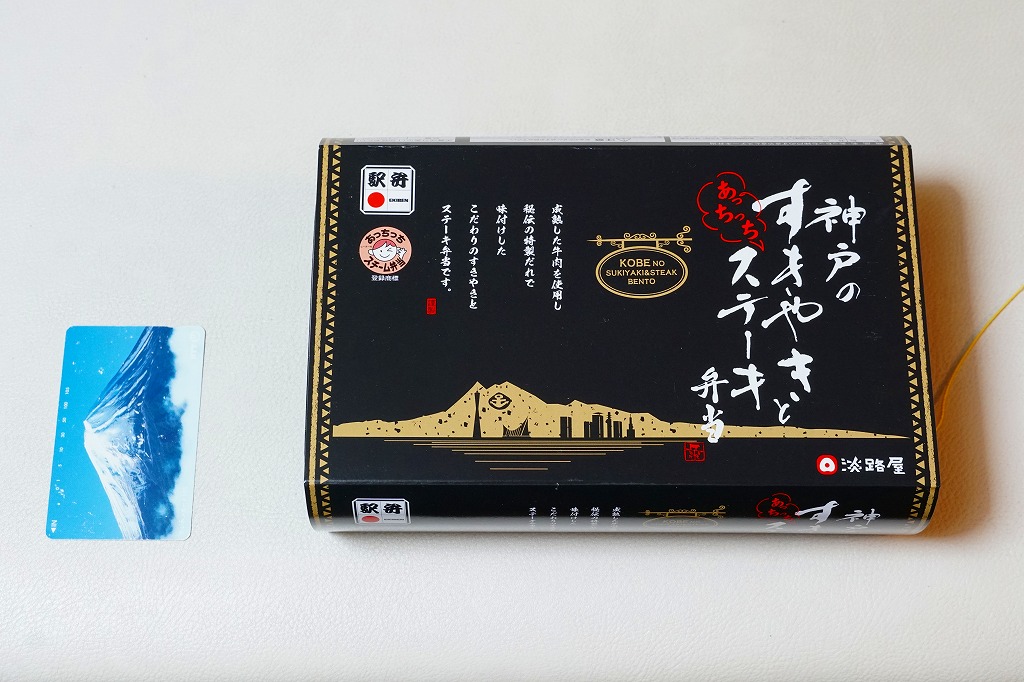 価格は2014年の購入時で1,130円。2016年秋に「AWAJIYA’S TAJIMA BEEF SUKIYAKI BENTO(あっちっち但馬牛すきやき弁当)」(1,400円)へ改称し値上げ。価格は2022年3月から1,440円。