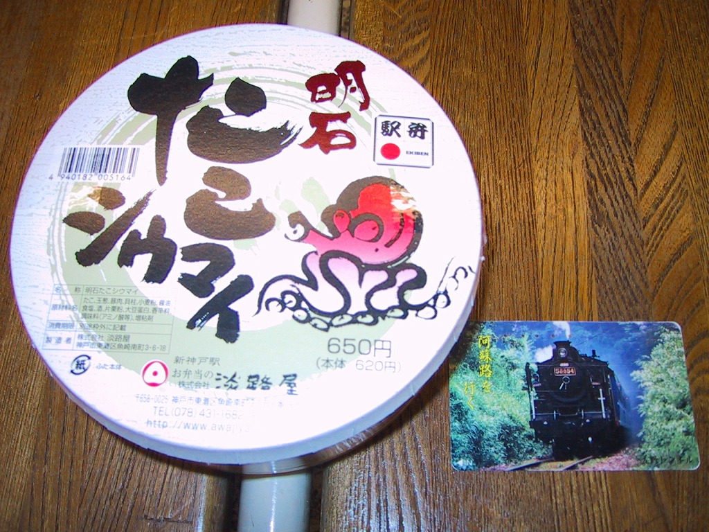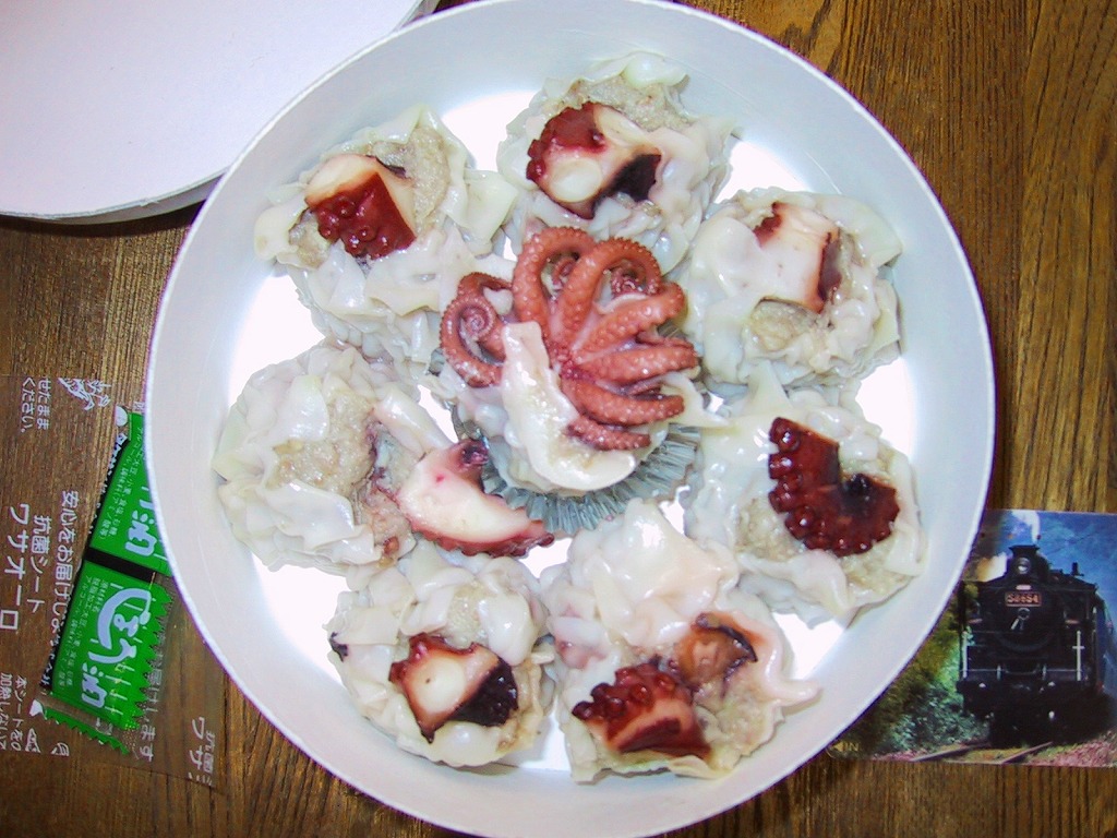 円柱形のボール紙製立体容器の中にタコ入り焼売を8個入れるだけ。その外観がとてもユニークで、円周上に配置した7個はシウマイの上にたこ焼きサイズのタコを載せ、真ん中の1個はイイダコをまるごと頭(本当は胴体)からシウマイに突っ込ませて上に足を広げている。味は関東人にとって非常に脂っこい。ふたに「650円(本体620円)」と書籍のように本体価格が書かれるのもユニーク。