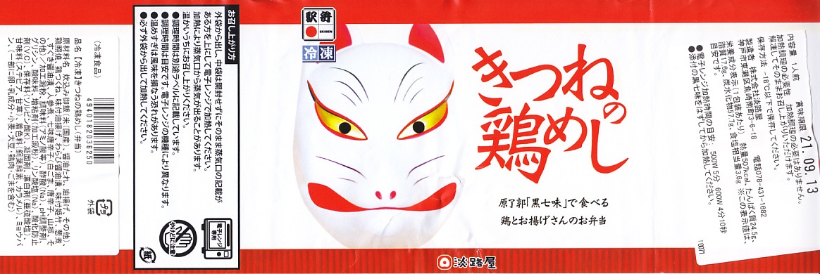 2021(令和3)年5月20日にオンラインストア(インターネット上での通信販売)で発売。政府の新型コロナウイルス感染症対策による影響を受け、自然解凍にも対応した冷凍弁当「どこでも駅弁」として、「ひっぱりだこ飯」「神戸名物すきやき弁当」「きつねの鶏めし」の3種類が誕生した。3個セット販売のみの対応で、「ひっぱりだこ飯」が2,460円、「神戸名物すきやき弁当」が2,400円、「きつねの鶏めし」が2,280円、3種各1個で2,380円。なのでこの「きつねの鶏めし」は、1個あたり760円と計算できる。加えて送料が必要。