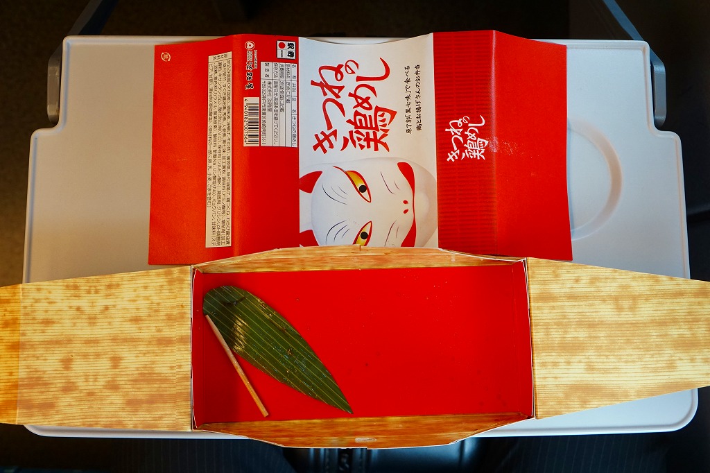 この駅弁は、旅行会社や新聞社など12社が主催する「ふるさと名品オブ・ザ・イヤー」の、2016年11月発表分の「こだわりの駅弁部門」を受賞。2017(平成29)年7月にその幹事会社のひとつのスマホアプリ「ステーションメモリーズ!」(駅メモ)の少女キャラクターの掛紙と焼き印で売られたそうな。2020年秋から季節版が併売され、これはおそらく2021年秋から通販や要予約の商品になったらしい。2022年からは春夏秋冬の「夏」に相当する期間の販売か。