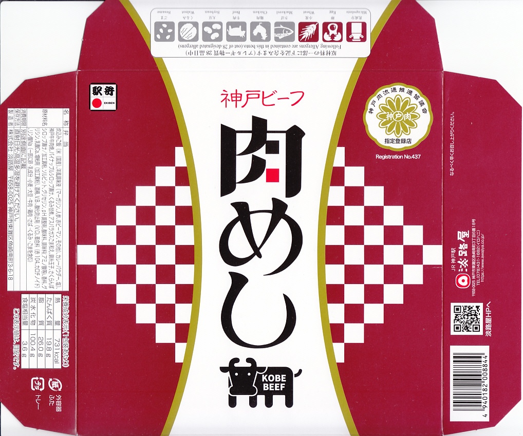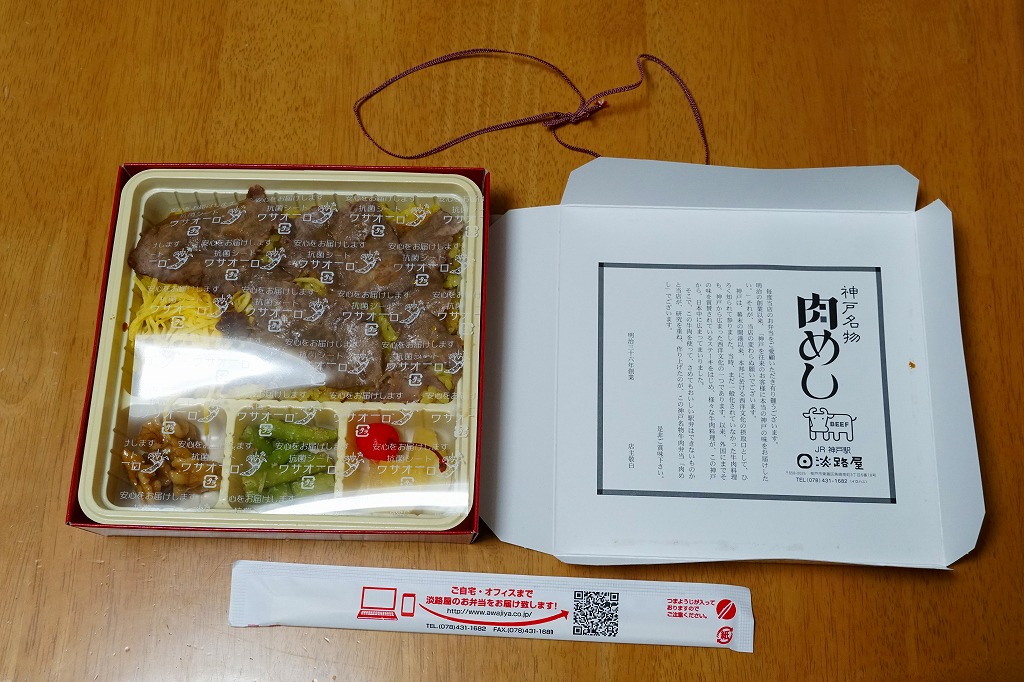2025(令和7)年1月の京王百貨店の駅弁大会で、神戸駅の駅弁として実演販売。バレンシアライスまたはカレー風味の御飯をタレ漬け肉で覆う肉めしと、タレ御飯をすき焼き肉などで覆う牛丼を、ひとつの容器に並べた。この価格と実演での販売で、お肉のおいしさの詰め合わせ。どうもこの会場でだけ売られた疑義駅弁のようだが、この味はいずれも現地で以前から親しまれるものである。