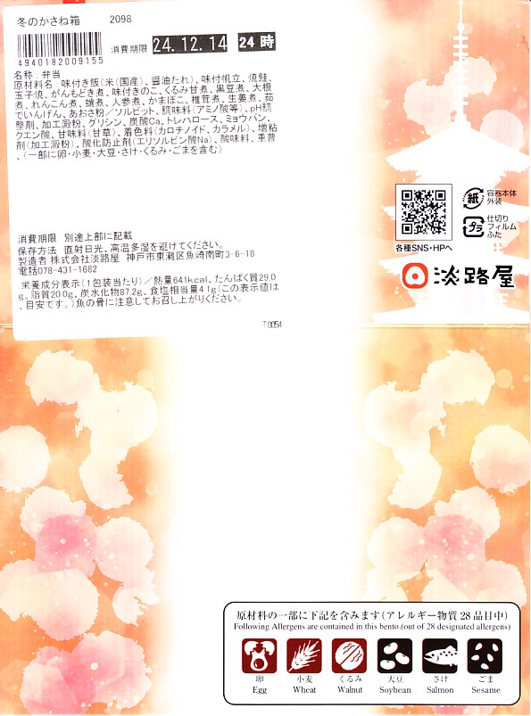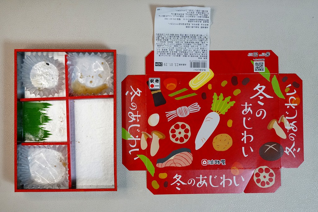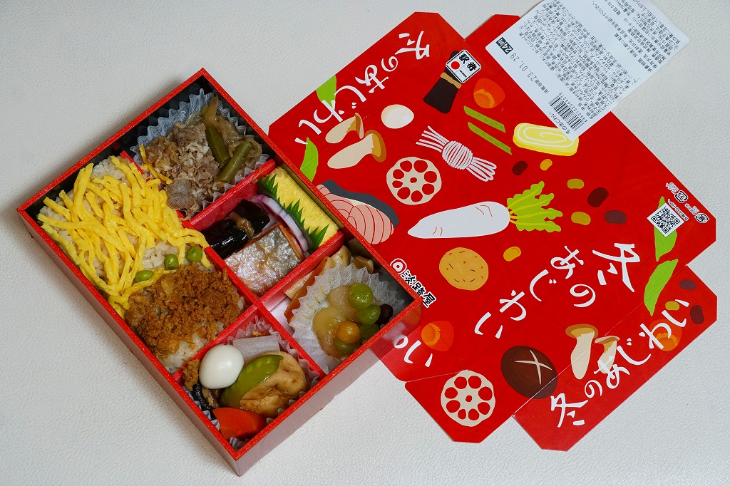 2015(平成27)年の1月までに「冬の味わい幕の内弁当」の名前で、京阪神エリアで発売か。おそらく12月から2月までの販売。中身は鶏そぼろと錦糸卵で覆う茶飯、焼鮭と昆布巻と玉子焼、牛すきやき、ニンジンやだいこんなどの煮物、エリンギ葱塩和えと煮豆。ふたの絵柄は中身の食材でできていて、かわいらしい。駅弁売店では比較的廉価な商品として、売れているのかもしれない。価格は2015年時点で880円、2020年時点で900円、2023年時点で950円。