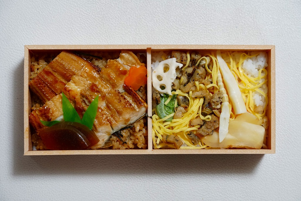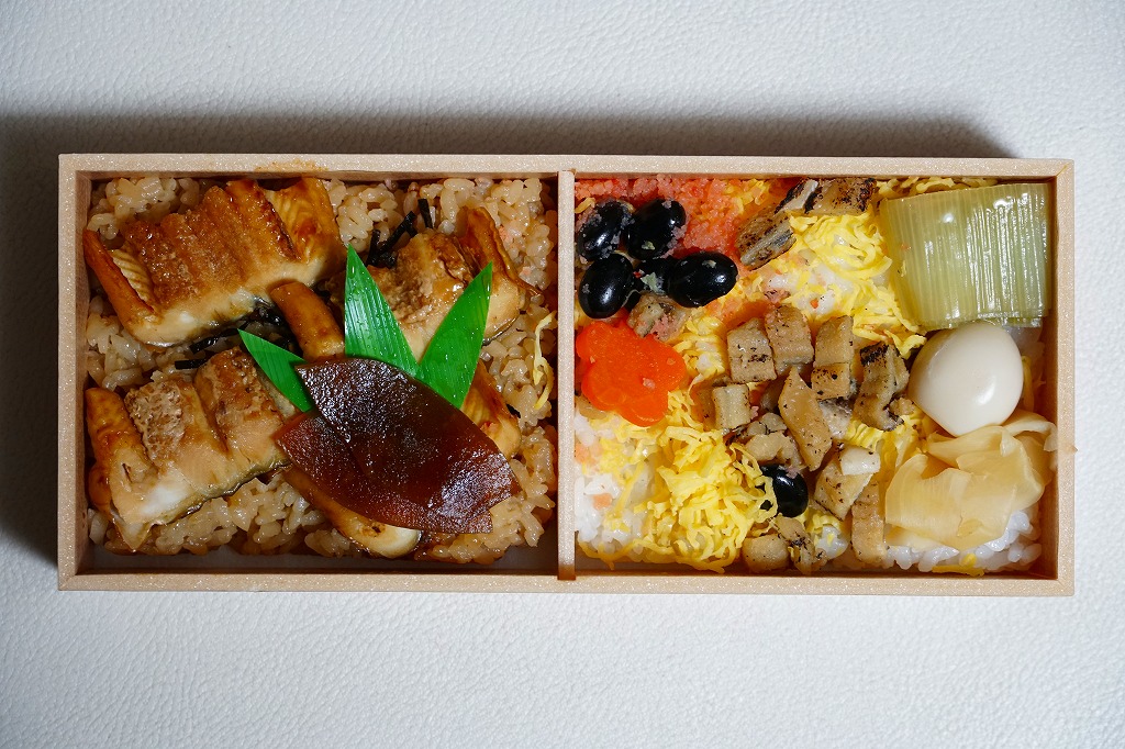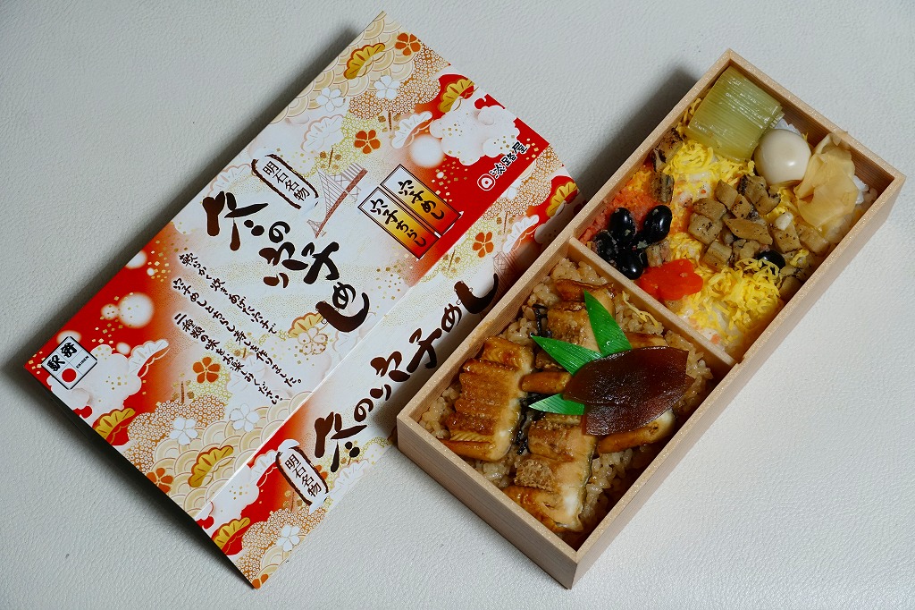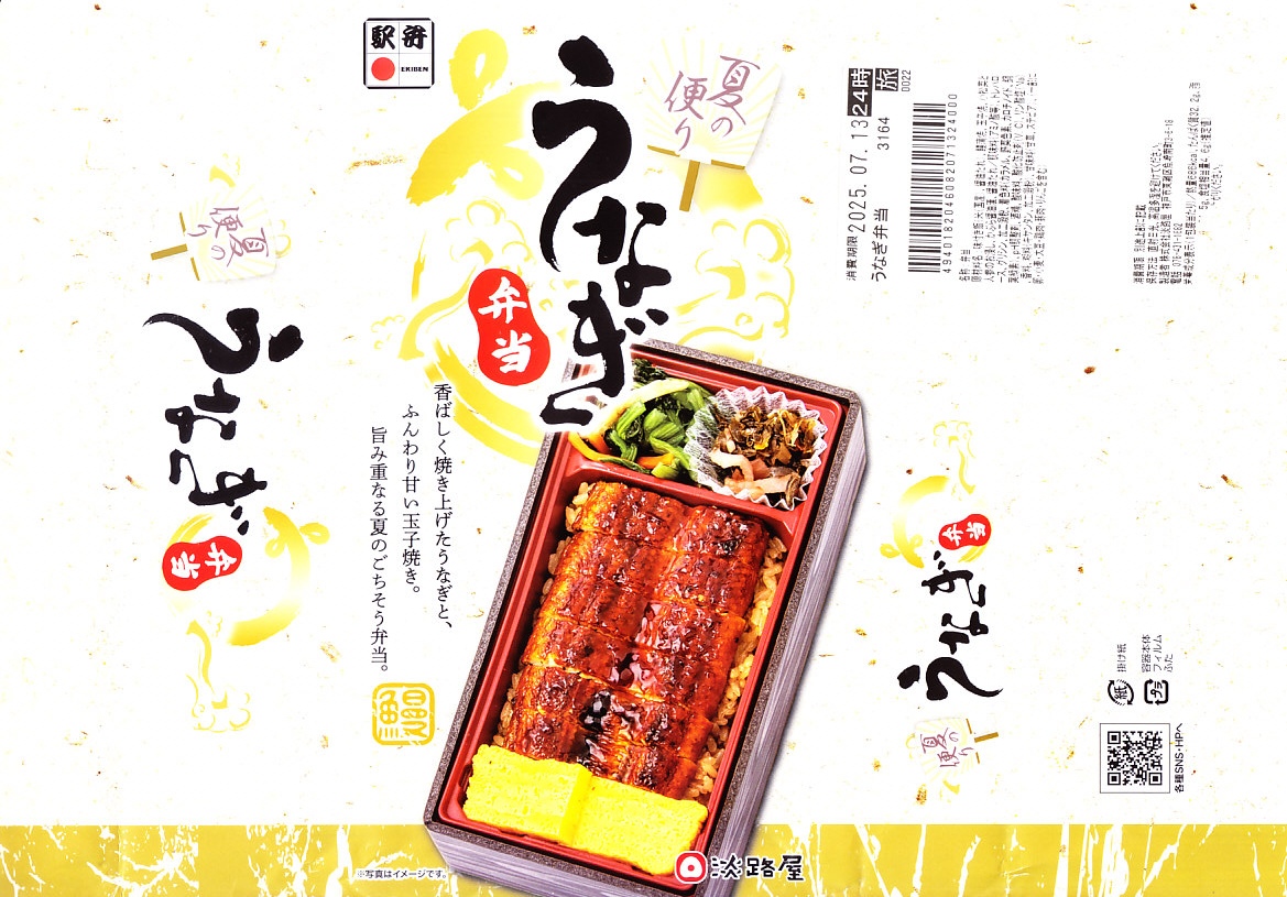 神戸駅弁のうなぎ弁当の、2025(令和7)年の夏版として、7月に発売。長方形のプラ容器に茶飯を詰め、ウナギの蒲焼きと玉子焼きで覆い、小松菜とにんじんのおひたしと、かぶら醤油漬を添える。特長も特徴もないウナギ弁当にみえて、ウナギの価格が暴騰して約20年、それ以前に全国各地で定番の駅弁であったうなぎ弁当が消えたりコストを意識し変質したりしてきたことを思うと、掛紙を使ってこの値段で、こんなに普通なウナギ駅弁に出会えて良かったと感じた。東京駅など関東地方でも販売。