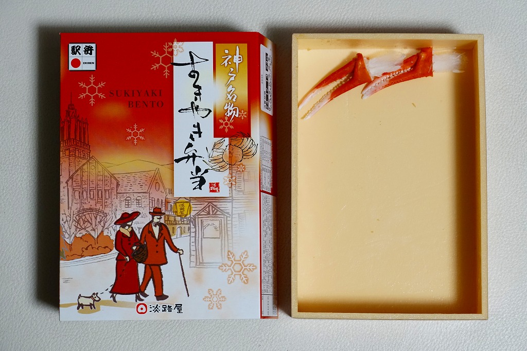 この姿と名前では、2022(令和4)年12月の発売か。駅弁催事での商品名は「冬のすきやき弁当」であり、下記の駅弁「神戸名物すきやき弁当」を四季の駅弁に変えたものだと思われる。スリーブの絵柄と宣伝文は従前を踏襲し、雪の結晶とカニと、冬らしい絵柄を加えた。