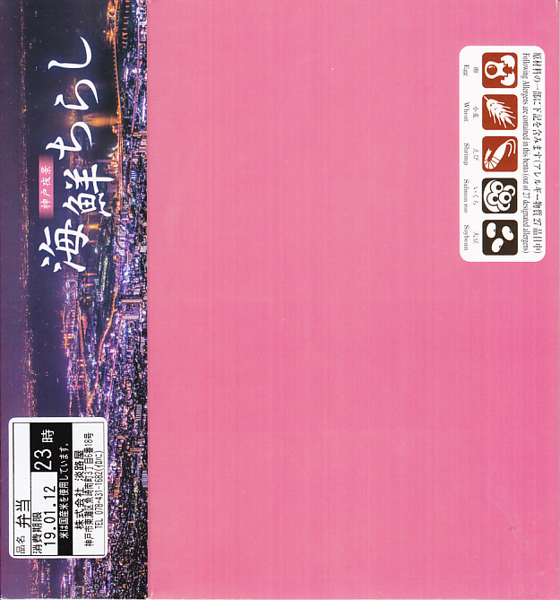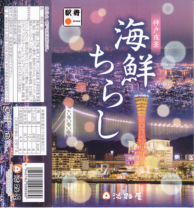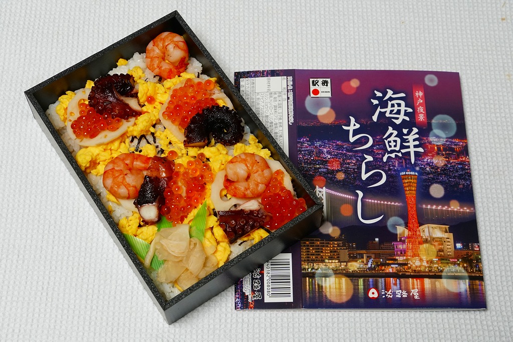 2019(平成31)年1月の京王百貨店の駅弁大会で輸送販売。2016(平成28)年12月に発売し、ルミナリエ期間中に売られる「神戸夜景弁当」の、名前とスリーブを変えて催事に持ってきた模様。黒い容器に酢飯を敷き、炒り卵、タコ、レンコン、イクラ、エビで覆い、ガリを添える。不思議に見える具の選定は、夜景の演出を目的にしたのだろうか。柔らかな風味が良好な印象に加え、4枚のレンコンそれぞれにタコとエビとイクラをていねいに載せており、実は具を散らしていないつくりもまた輝いていた。この駅弁大会以外で売られたかどうかは分からない。