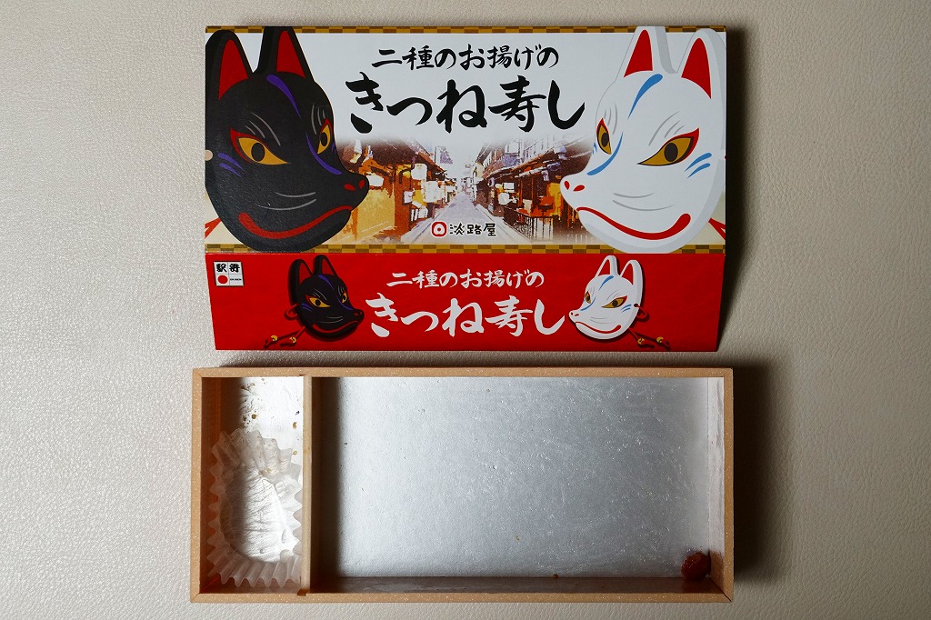 虎の威を借る狐とは、阪神タイガースと関係なく、約2000年前もの中国の書物「戦国策」を出典とする故事成語で、他人の権威の陰に隠れていばる小人物という意味。とはいえ、きっと語呂や語感で駅弁の名前にしたのだろう。
