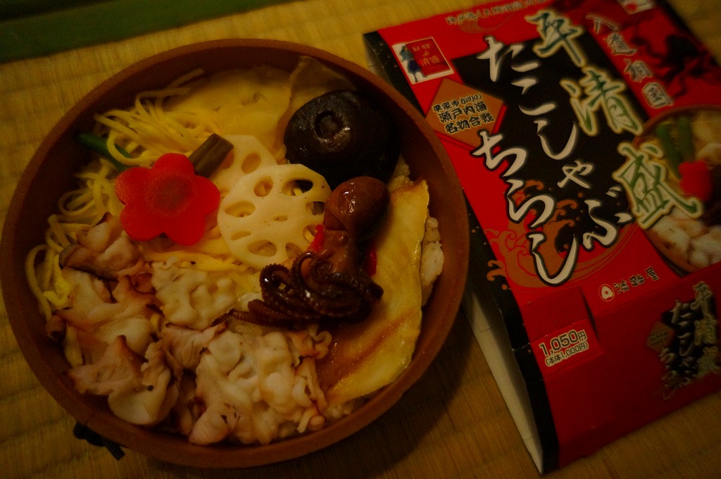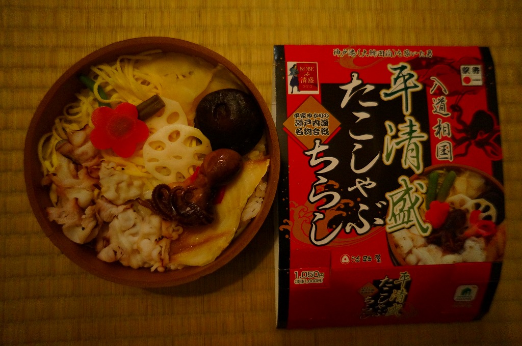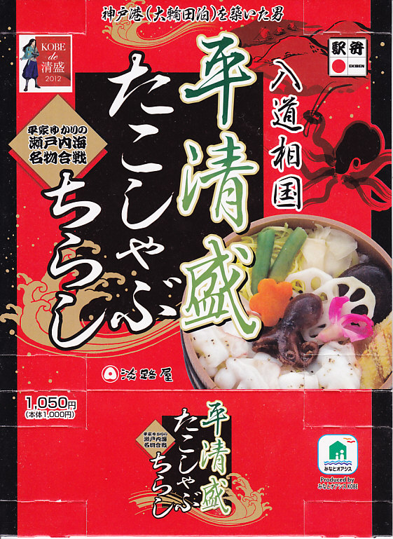 2012年のNHK大河ドラマ「平清盛」の放送に合わせて、2011年12月15日から2012年12月31日までの期間限定駅弁として発売。しかしその販売は半年程度で打ち切られた模様。丸い桶形の容器を、商品名と中身の写真などと、底面に神戸市内の平清盛関連箇所を描いたボール紙の枠にはめる。中身は酢飯の上にタコしゃぶ、イイダコ、アナゴ、シイタケなどを詰めるちらしずし。冷たい状態で食べても、タコの身に適度な柔らかさがあった。