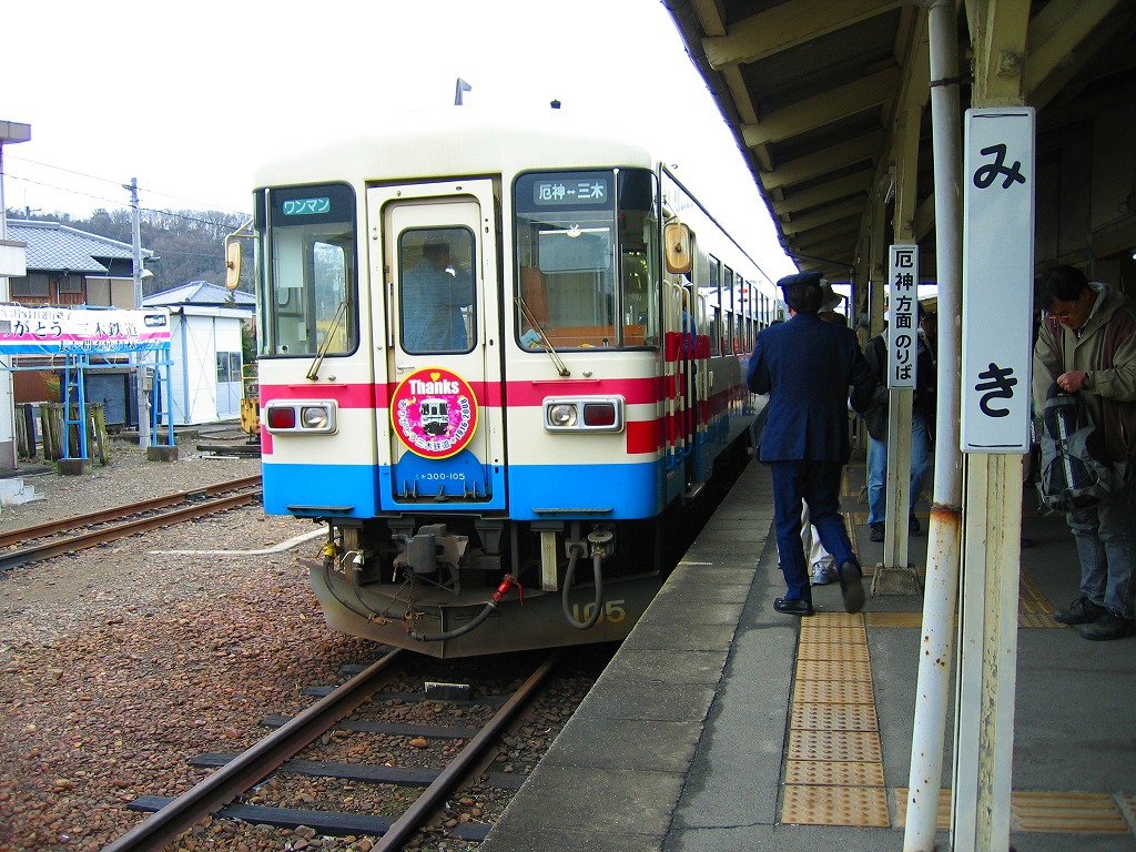 三木鉄道は、国鉄の廃止対象線であった三木線を1985(昭和60)年4月に転換した、全長6.6kmの第3セクター鉄道。大都市近郊という立地を生かせないまま、転換後も利用は減少し赤字を積み重ね、2006(平成18)年1月には鉄道の廃止を公約に掲げた候補者が三木市長選に勝利、市民アンケートでも廃止に7割の賛成票が入る状況の中、沿線の歓迎をもって2008(平成20)年3月31日限りで廃止された。