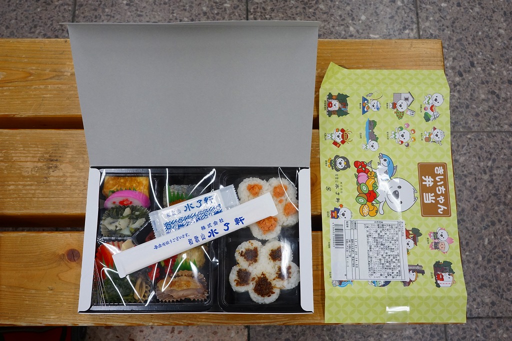 JR和歌山駅の4本のホームでは、駅ビルや表玄関に近い側から、柿の葉ずしたなか、阪和第一食堂、和歌山水了軒、キヨスク(弁当販売なし)と、それぞれ異なる業者が売店を出していた。こんな色分けのある駅は、とても珍しかった。これらの売店は2016(平成28)年1月までにすべて閉店。阪和第一食堂の商品は改札外のキヨスクなどに引き継がれず、この駅弁の現存は不詳。