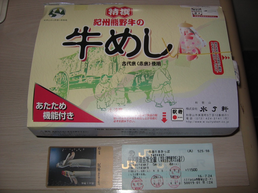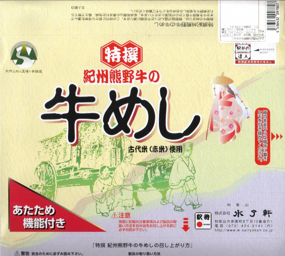 JR西日本の駅弁キャンペーン「駅弁の達人」の実施に伴い、2004(平成16)年5月1日に発売。加熱機能付き容器を使用した牛飯駅弁で、中身は古代米を加えた御飯の上に熊野牛すき焼き肉を載せて、キャベツ・アスパラ・人参・パイナップル・紅生姜を添えるもの。飯も肉も触感が楽しい牛飯に野菜炒めという内容はなかなか美味くて個性的。2004年度のJR西日本の駅弁キャンペーン「駅弁の達人」の対象駅弁。現在は販売されていない模様。