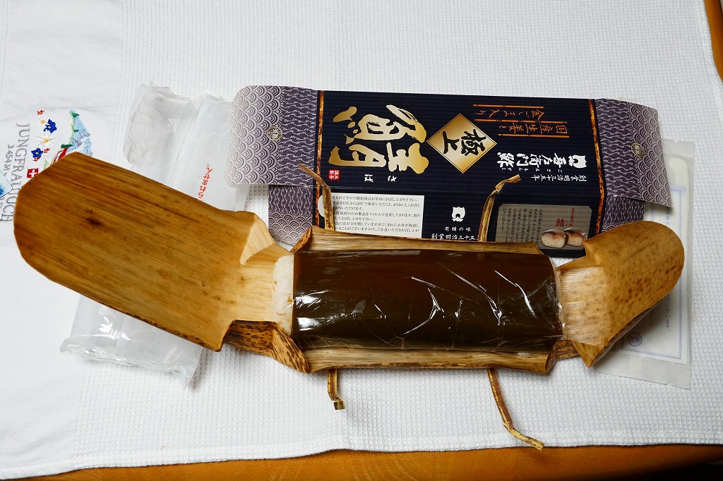 米子駅弁の吾左衛門鮓シリーズの最高峰。見た目や構造は通常版と同じ。通常版より大ぶりのサバを使うという中身は、ゴマを混ぜた酢飯よりサバの身のほうが多いのではないかと思うほど、たっぷりでプリプリのサバが、黒板昆布に巻かれていた。価格は2019年の購入時で2,800円、同年9月から2,900円。