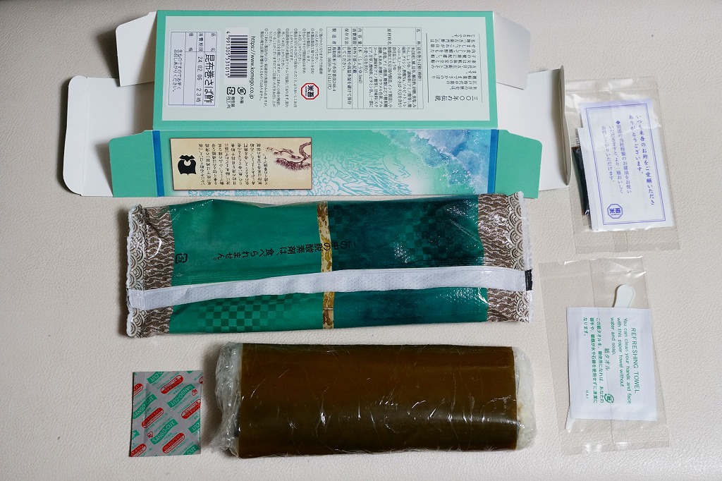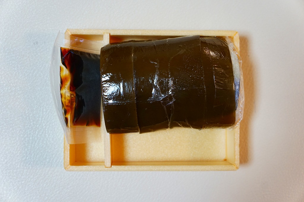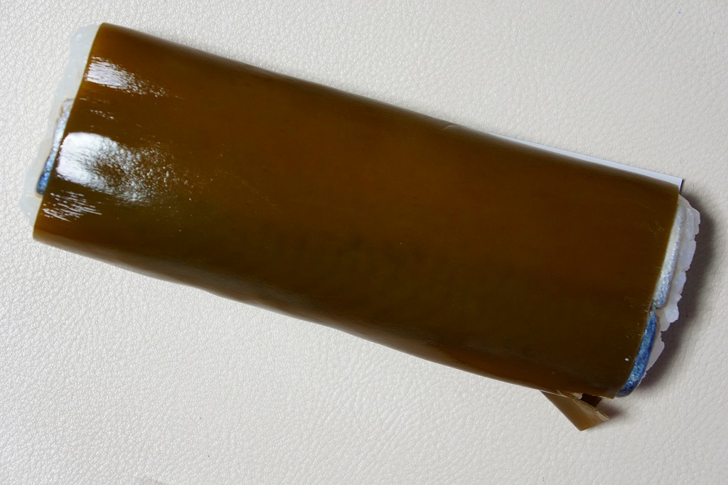 昆布が白板になっている以外、容器も内容も価格も通常版と変わらないと思うが、パッケージを読むと酢も違うらしい。今回の味は酢締め鯖と焼鯖の中間にあるミディアムレアな焼き魚という感じ。江戸を名乗るも、東京で売られるものとも異なる。価格は2011年の購入時で1,890円、2015年時点で1,900円。2015年頃までの販売か。