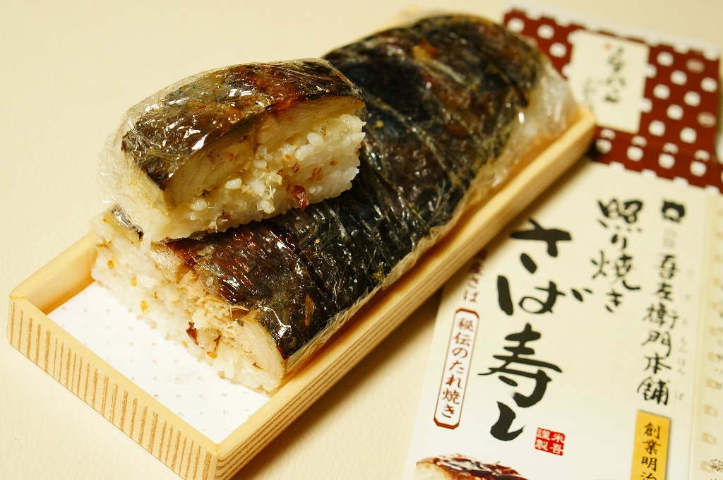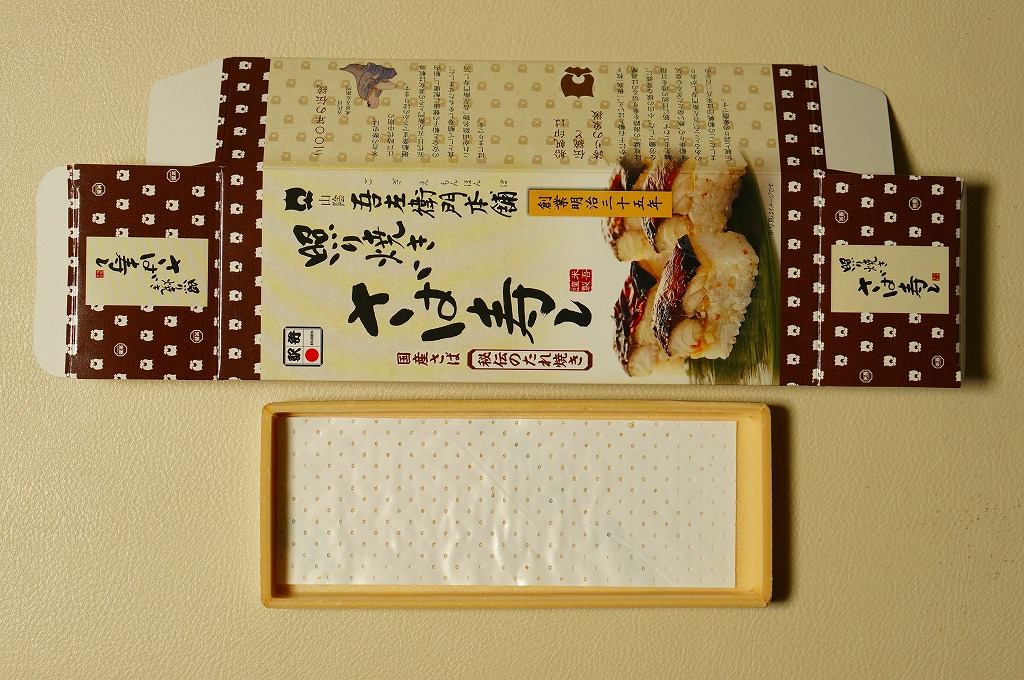 身は「吾左衛門鮓」のものを思うとだいぶ薄めで、サバは紙箱の見本写真ほど焼かれておらず、サバ寿司向け焼きサバと焼かないサバの中間くらいに感じたのは気のせいか。価格は2021年時点で1,450円、2023年時点で1,500円、2025年時点で1,700円。