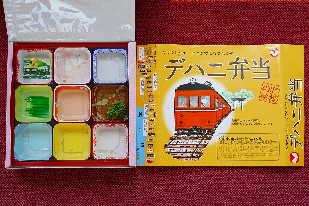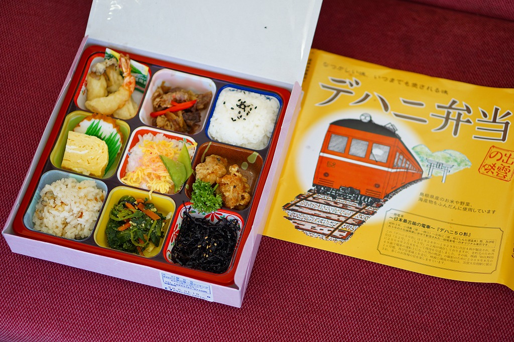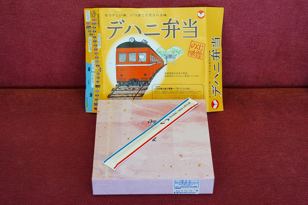 2014(平成26)年4月29日に発売された、土休日限定の駅弁。一畑電車の松江しんじ湖温泉駅と出雲大社駅で、同じものが売られる。名前のとおり、1928(昭和3)年生まれで映画に出演した一畑電車最古の現役車両「デハニ50」であり、掛紙にはそのイラストが描かれる。