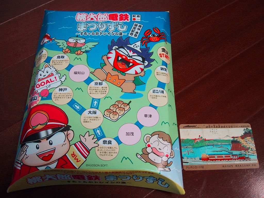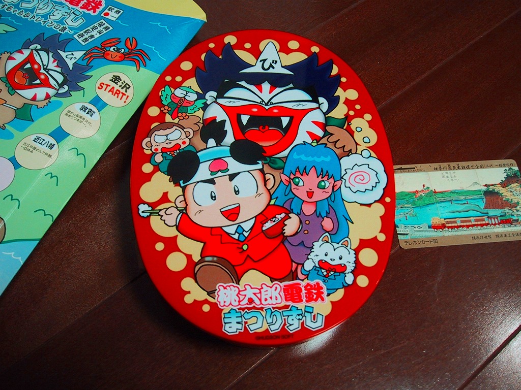 岡山駅弁名物の祭ずしを、桃太郎電鉄のキャラクターをデザインした容器に入れ、JR西日本エリアが舞台のすごろくとなるパッケージに収めた。100ポイント集めると駅弁1,000円分と交換できるという、ポイント付桃太郎電鉄トレーディングカードが入り、当たりが出るとサイコロが入っているというから、筆者が購入したものは当たりだった模様。味はおなじみのまつりずし。現在は売られていない模様。
