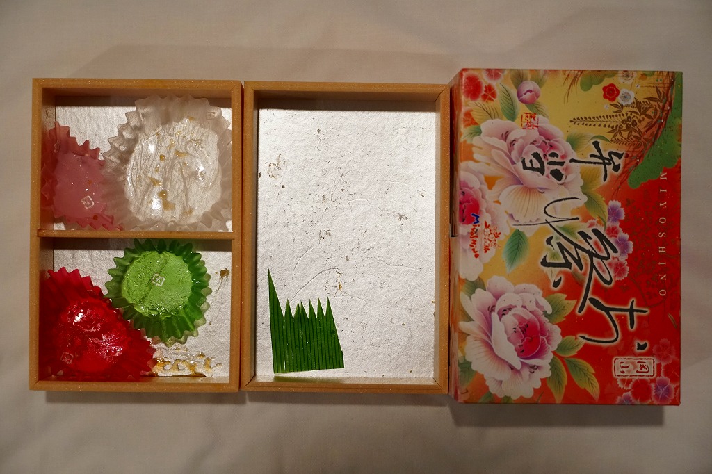 2007(平成19)年1月13日に入手した、岡山駅弁のふた。その構造は上記の2024年のものと同じく、二段重ねの容器をすっぽり覆い、左右から開ける独特な形をしていた。中身に差異はみられるが、下段が祭ずしで上段がおかずという構成は変わらない。