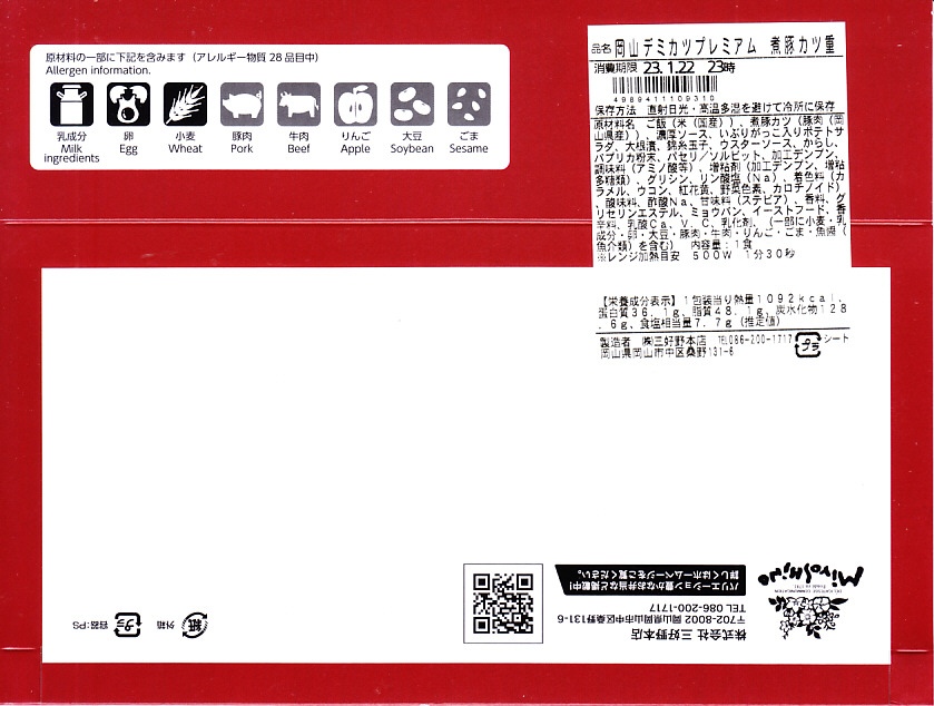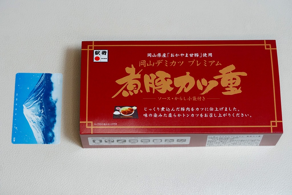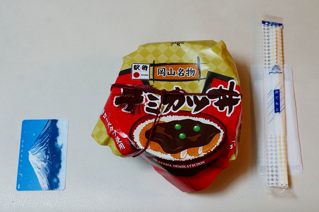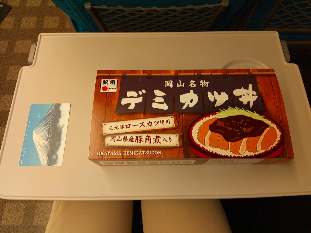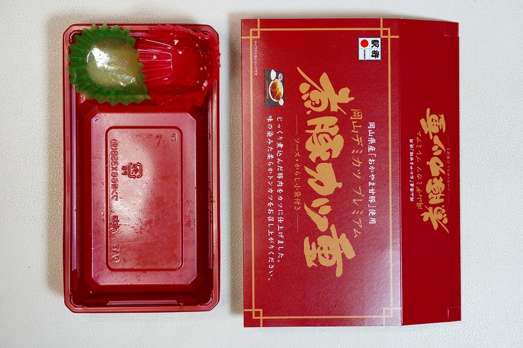 2020(令和2)年1月に発売、同月の京王百貨店の駅弁大会で実演販売。岡山のご当地グルメとして売り出し中のデミカツ丼が、単独で駅弁になった。ロースカツにデミグラスソースを掛けて白飯に載せ、グリーンピースで彩り、豚角煮と昆布巻と漬物を添える。ソースを含めて3タイプの肉でガツンと来る内容。岡山では昭和時代から、カツ丼といえばこういうデミグラスソースかけを指すらしく、ご当地グルメ時代になり「デミカツ丼」と呼び始めた。価格は2020年の発売時や2021年の購入時で1,100円、2020年の秋までに780円へ値下げ。2021年までの販売か。
