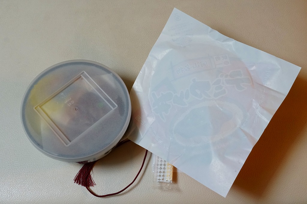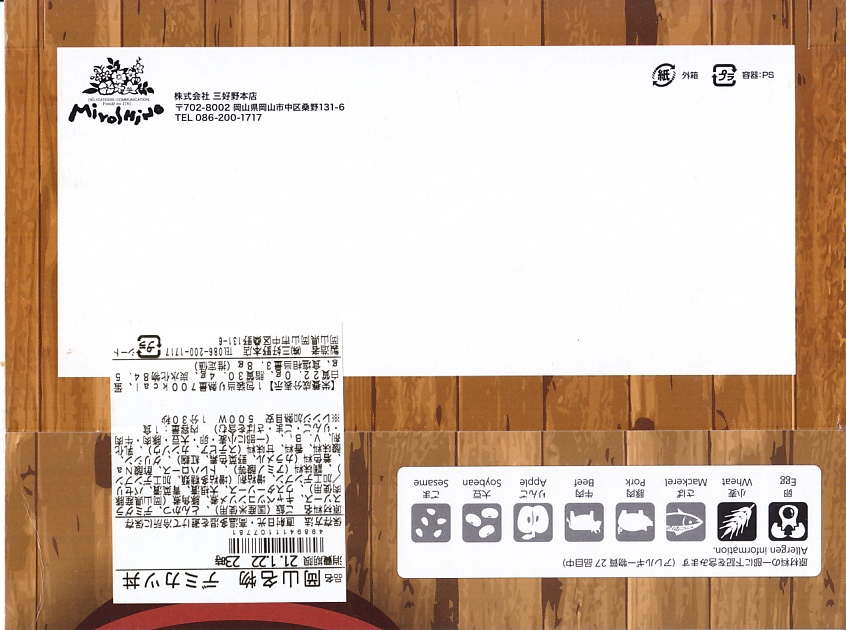 2020(令和2)年1月18日に購入した、岡山駅弁の掛紙。必要なことは、ちゃんと書いてある。デパートの駅弁大会で購入したため、調製印がそうなっている。