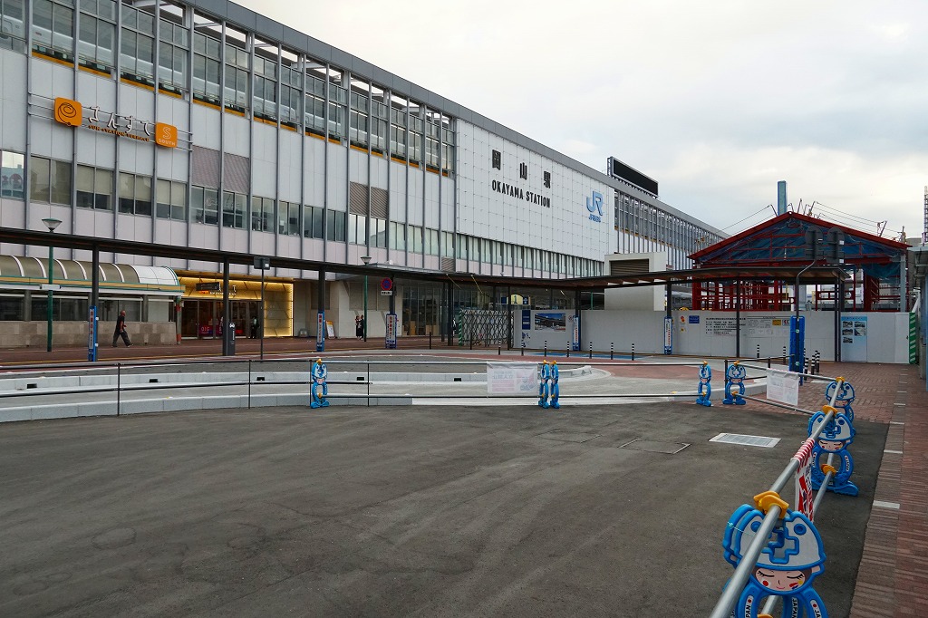 東京駅から新幹線で約3時間半。岡山市は岡山県の中央に位置する、人口約71万人の城下町で県庁所在地。市街に複数の百貨店を抱える商業、臨海部や内陸部に工業団地を抱える工業や、桃や米などが特産の農業が盛んであるほか、新幹線に8方向からの在来線が集まる鉄道の要衝でもある。駅弁は明治時代の鉄道開業当時からの駅弁屋の駅弁から、西日本各地の駅弁や地元の弁当屋が駅構内の店舗に卸す弁当まで、様々なものを朝から晩まで選べる。1891(明治24)年3月18日開業、岡山県岡山市北区駅元町1丁目。