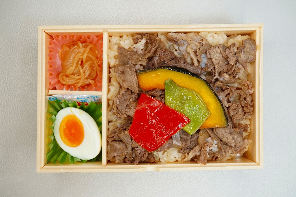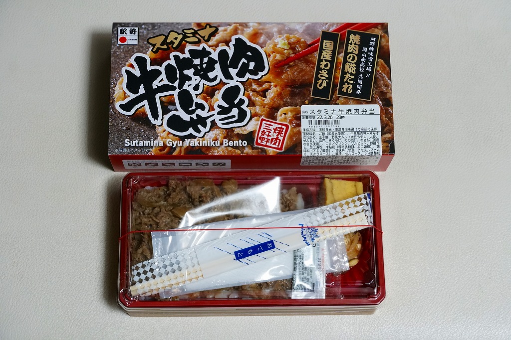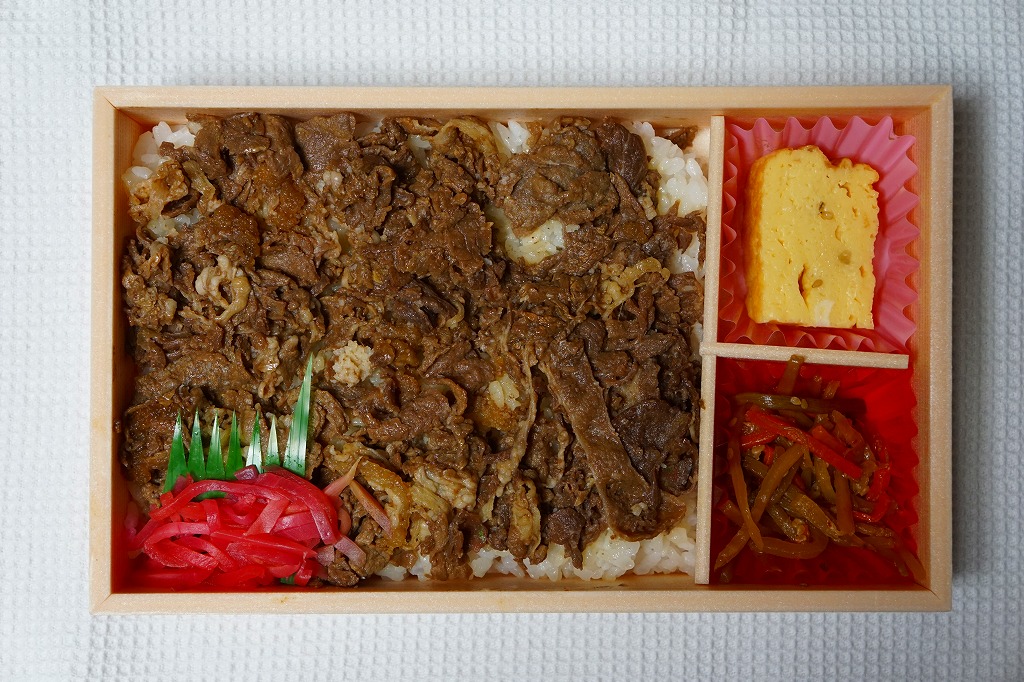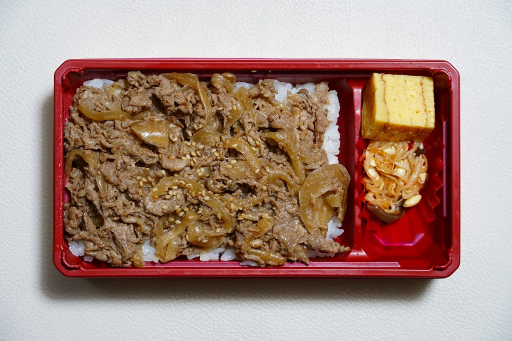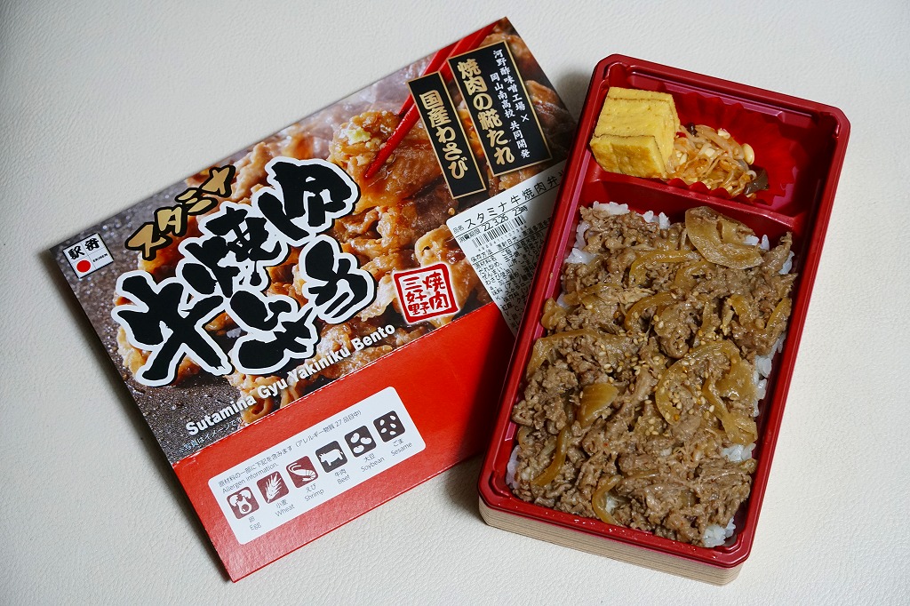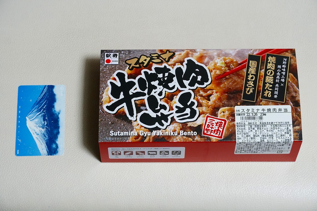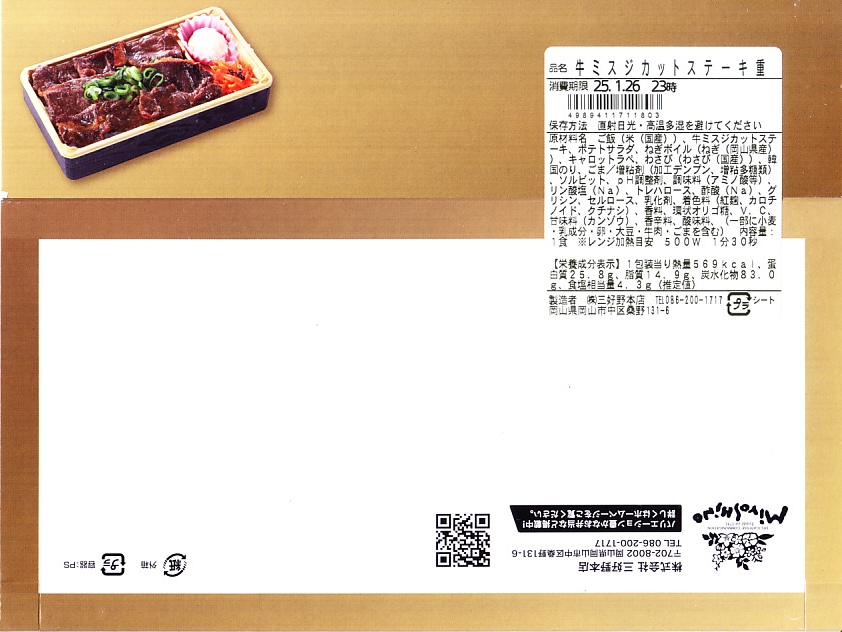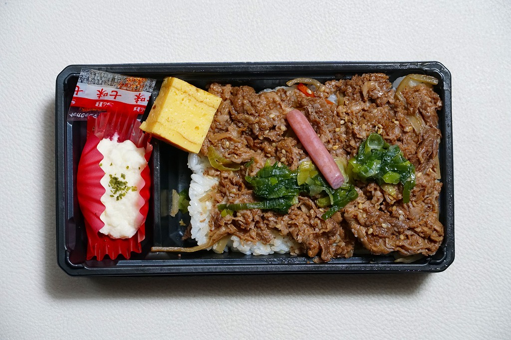 2024(令和6)年7月までに岡山駅などで発売か。白飯を牛焼肉で覆い、ねぎボイルを載せ、ポテトサラダとキャロットラペを添え、わさび小袋を別添。現物でなく公式サイトで「牛ミスジ肉を糀入りのタレに漬込み、香ばしく焼き上げました。」と紹介する牛ミスジカットステーキは、岡山県真庭市の河野酢味噌工場と岡山南高等学校商業学科の生徒が共同開発し2018年4月から市販される「焼肉の糀たれ」をまとい、しかしここでは薄味でホルモンのような硬い肉に難儀した。