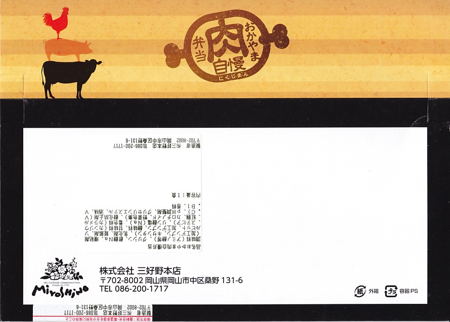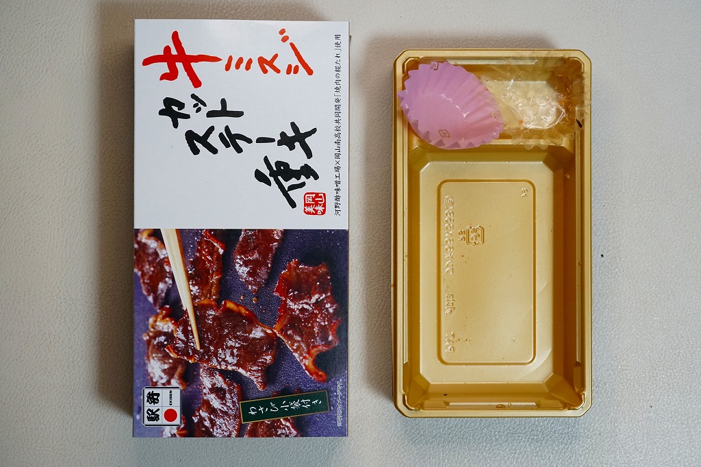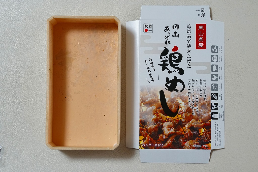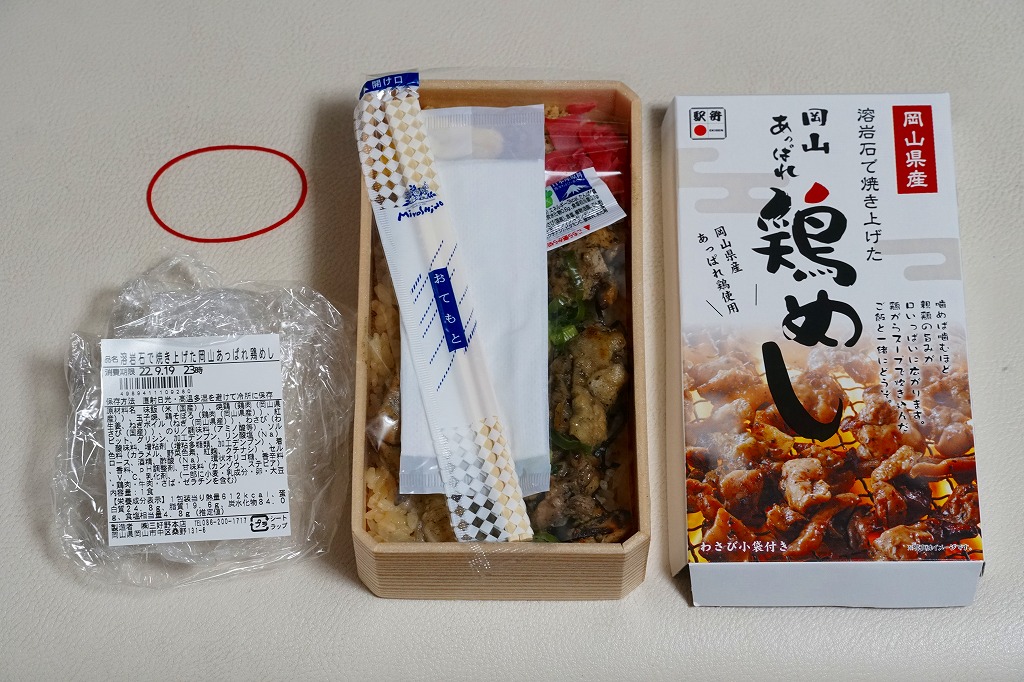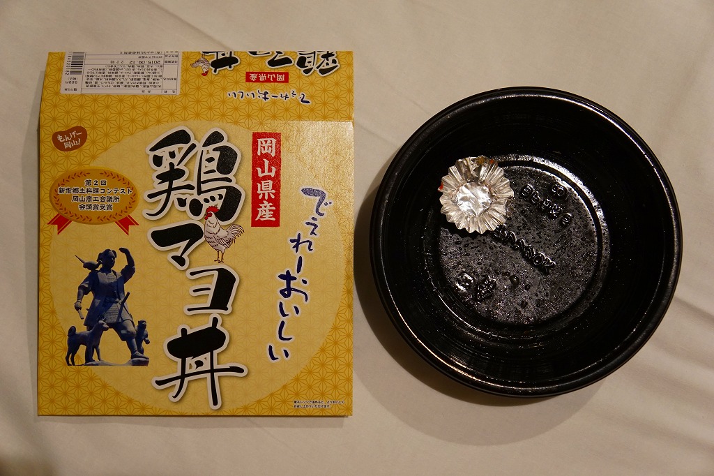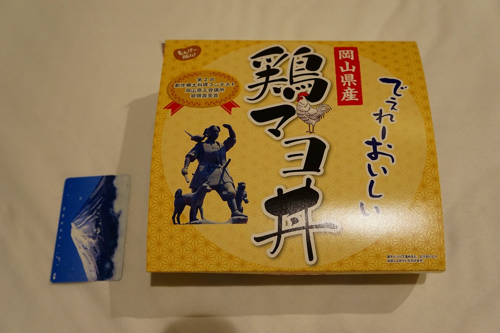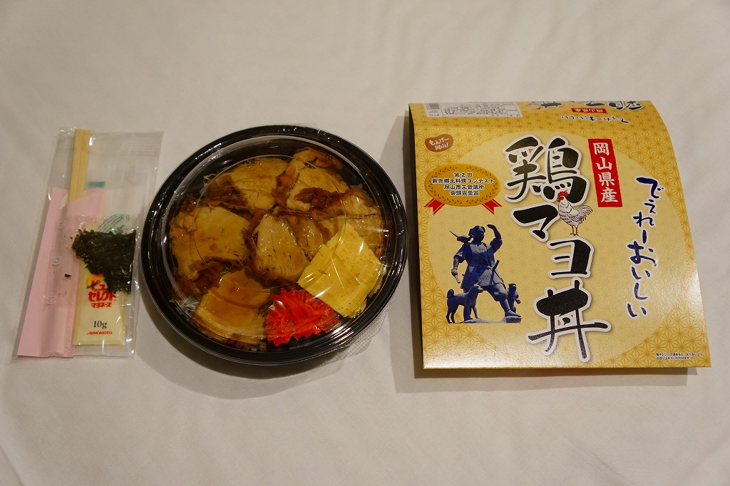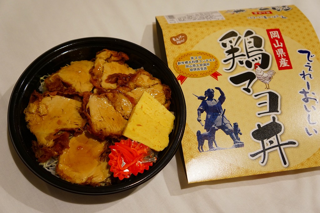 パッケージがなければ駅弁には見えなくても、やや冷蔵の味には駅弁の締まりが感じられた。鶏マヨ丼あるいはマヨ丼、御飯に鶏肉その他の肉をかけた丼にマヨネーズをかけて食べるものについて、これを岡山の名物だと考える考察が、ネット上に少し出ている。2016年までの販売か。
