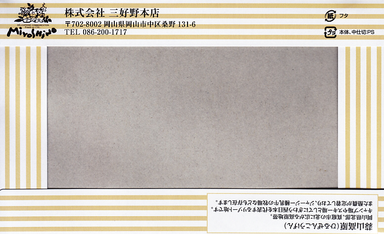 1963(昭和38)年4月4日(木)の調製と思われる、昔の岡山駅弁の掛紙。絵柄は下記のものと同じでも、文字の位置が微妙に異なる版違い。