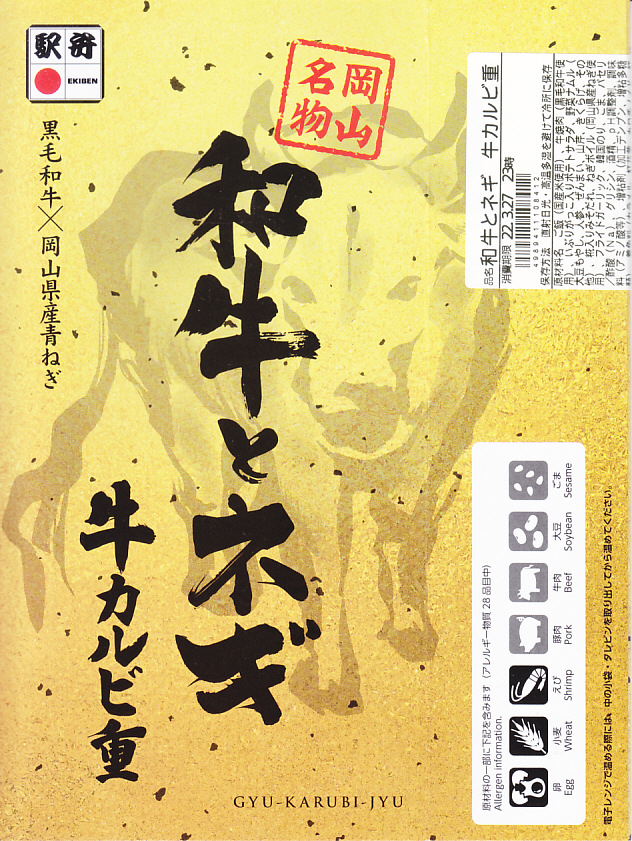 2021(令和3)年7月に「和牛とネギ牛カルビ重」「黒毛和牛の四種盛り弁当」とともに発売。駅弁ではあまり見られないと思う、白いスリーブに収めた長方形の容器に、白飯を詰め、きんぴらごぼうと黒毛和牛の牛肉煮で覆い、瀬戸内青葱出荷組合の「ぐんぐんの青ねぎ」と芽れんこんで彩り、ポテトサラダと玉子焼と七味唐辛子を添える。白飯を牛肉煮で覆う普通の牛丼駅弁に見えて、ネギなどの添え物での味を盛り立て、強い味付けで飯が進む。「岡山名物」にならなくても、元気が出る駅弁。2022年で終売か。