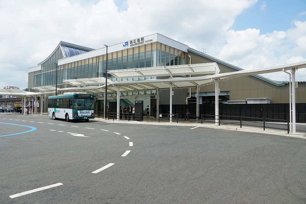 広島駅から山陽本線の電車で3駅7分。広島の中心市街地から太田川の支流をまたいだ西側の集落「己斐(こい)」に、鉄道の駅ができ、路面電車がやって来て、広島市に編入されてその市街に呑み込まれた。西広島駅に駅弁はないが、己斐駅を名乗った頃の戦前昭和時代には構内営業者がいたという。1897(明治30)年9月25日開業、広島県広島市西区己斐本町一丁目。