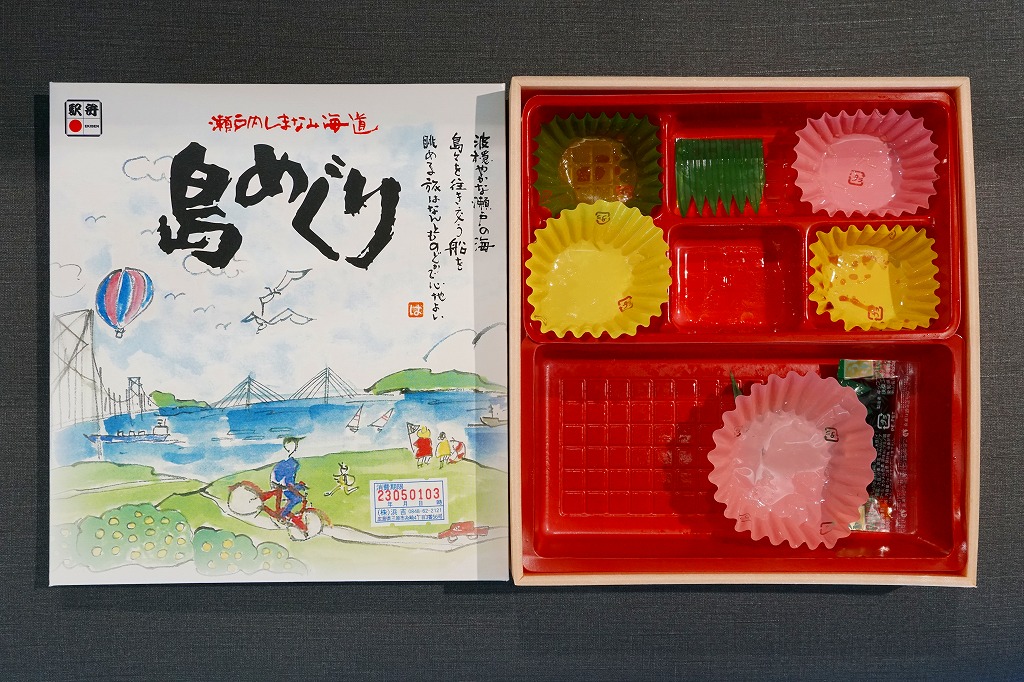 2000年代までに福山駅で発売か。あるいは1999年のしまなみ海道の開通に合わせて発売か。当時の福山駅の駅弁屋である鞆甚の駅弁の名前が、2003年に現在の浜吉の駅弁に引き継がれた。ふたには海と島と長大橋と自転車に船舶や柑橘などが描かれ、本州と四国を結ぶ自動車道、西瀬戸自動車道、本州四国連絡道路尾道・今治ルート、通称「しまなみ海道(かいどう)」の特徴をよく表している。2010年代にはしまなみ海道のイラストマップを載せていた。