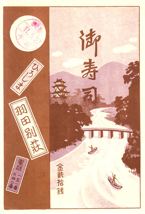 1922(大正11)年5月27日の調製と思われる、昔の広島駅弁の掛紙。当時の広島城と太田川は、こんなに緑豊かだったのかどうか。