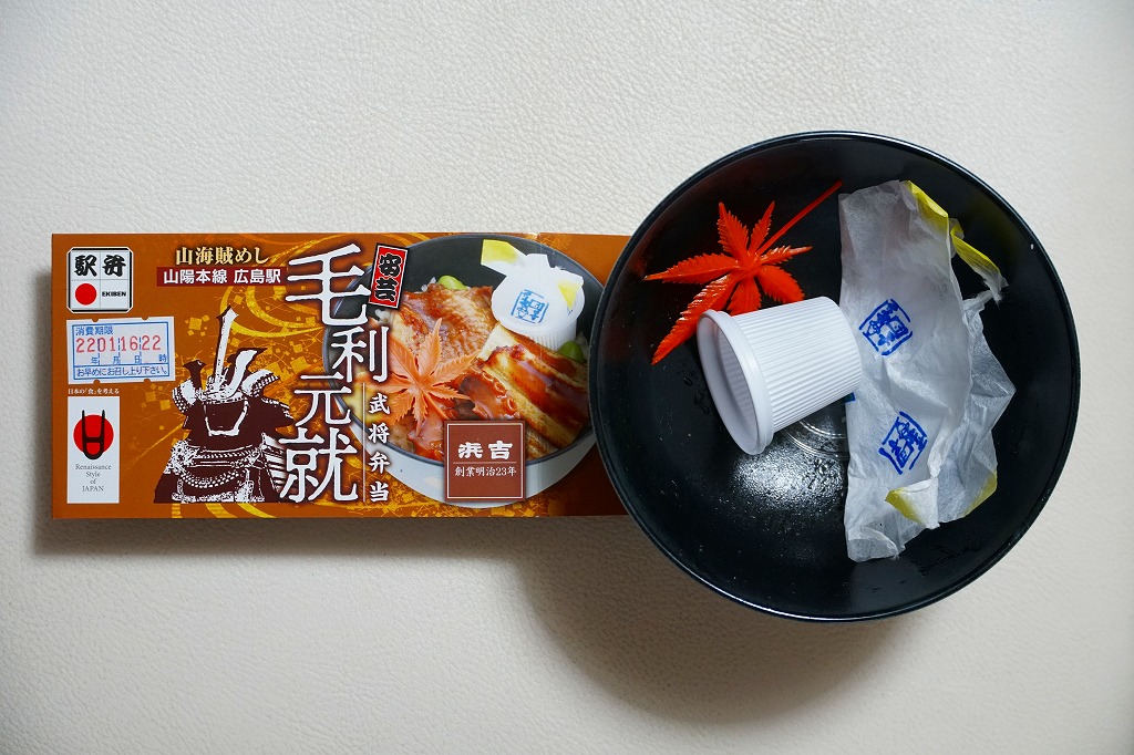 毛利元就(もうりもとなり)は、現在の広島県安芸高田市に生まれた戦国武将。毛利氏の第12代当主として大永3年(1523年)に吉田郡山城を継ぐと、策略に長じ勢力を拡大、半世紀で現在の岡山、広島、島根、山口の各県に相当する6か国を支配する大名となった。1997年のNHK大河ドラマが「毛利元就」で、当時は広島駅で駅弁となった。この駅弁(ではないかもしれないが)の調製元である浜吉は、尾道で創業し、明治時代に駅へ進出して鉄道の機関庫ができた糸崎に転じ、1975年に新幹線の駅ができた三原を拠点とし、2003年に福山駅の駅弁屋の倒産で福山を主戦場とし、既存の駅弁屋が君臨する岡山駅と広島駅にも駅弁を送り込み、徐々に勢力を拡大しつつある。