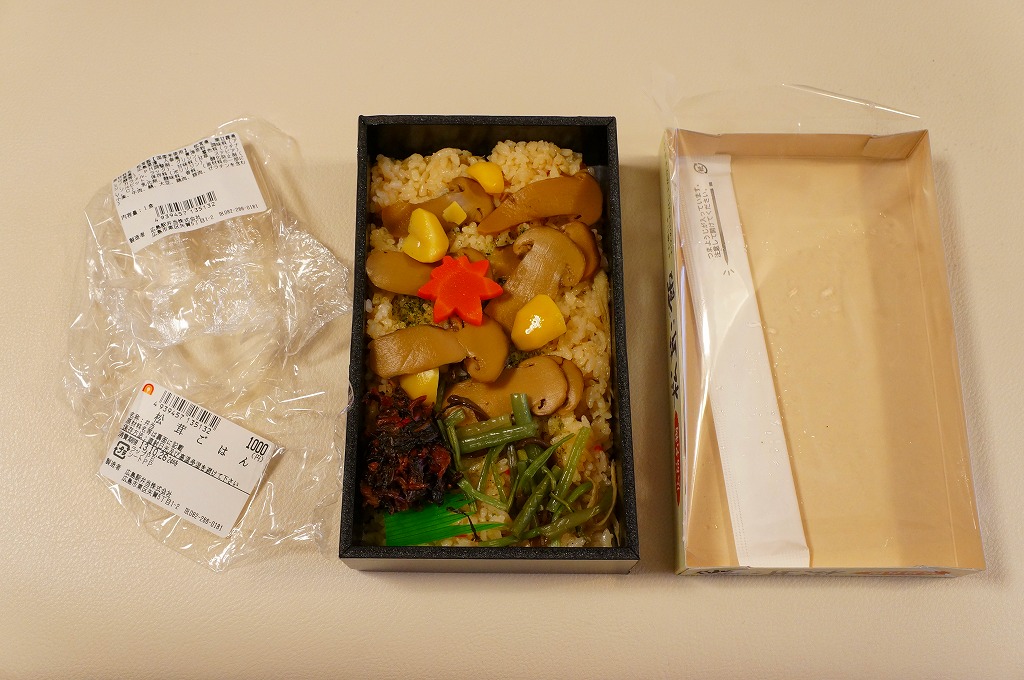 国産の松茸が豊作になったという話は聞かないが、近年は輸入マツタケ松茸が中国や北朝鮮ではなく北欧や北米から入ってくるようになっており、これで千円の駅弁でも分量を出せるようになったのだろうか。その他の具はなぜか、不思議な甘さを持っていた。おそらくこの駅弁も、現存しない模様。