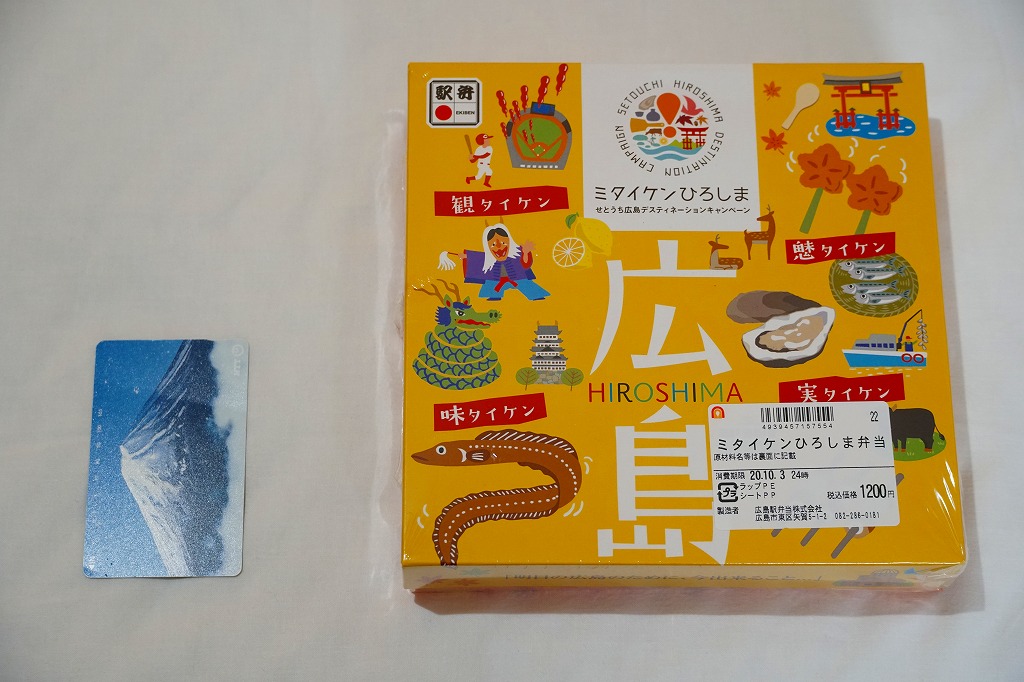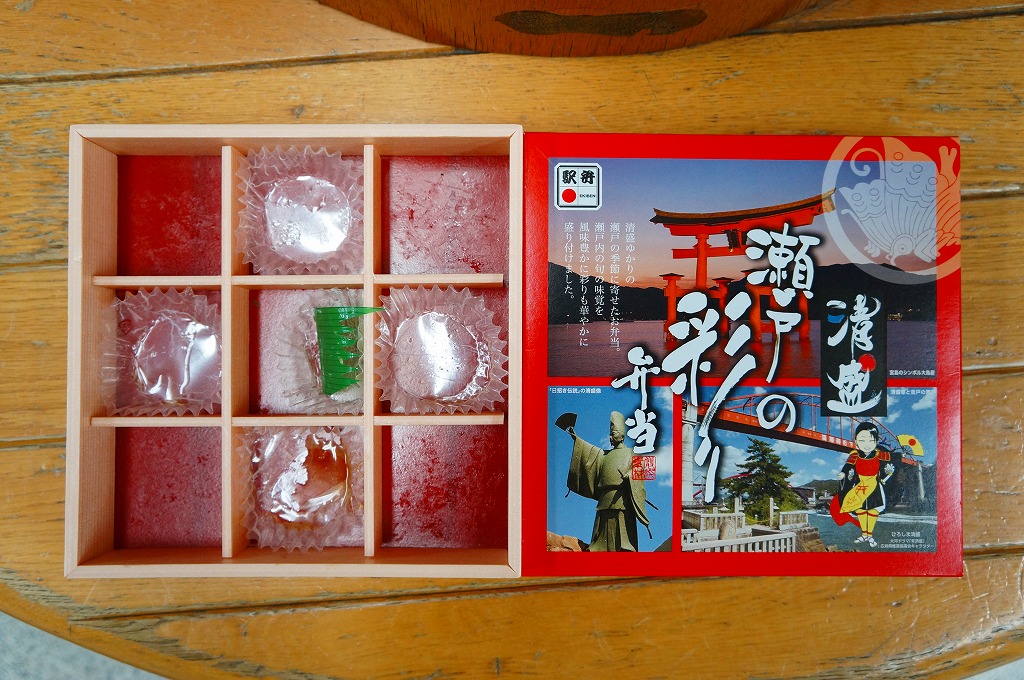 2020(令和2)年10月から12月までのJRグループの観光キャンペーン「ミタイケンひろしま(せとうち広島デスティネーションキャンペーン)」の会期に合わせて発売。ふたにそのロゴマークと、広島の名所や名物のイラストがちりばめられる。中身は周囲に穴子飯、ジャコ飯、カキフライとレモンゼリー、玉子焼とナスおひたしを配置し、中央に牛肉煮、イワシ南蛮漬、そしてなんと、もみじ饅頭の天ぷら。あんこの饅頭を揚げてしまうとは、食べた人の感想を聞いてみたいもの。会期の終了後も売られ、翌年8月頃に終売か。