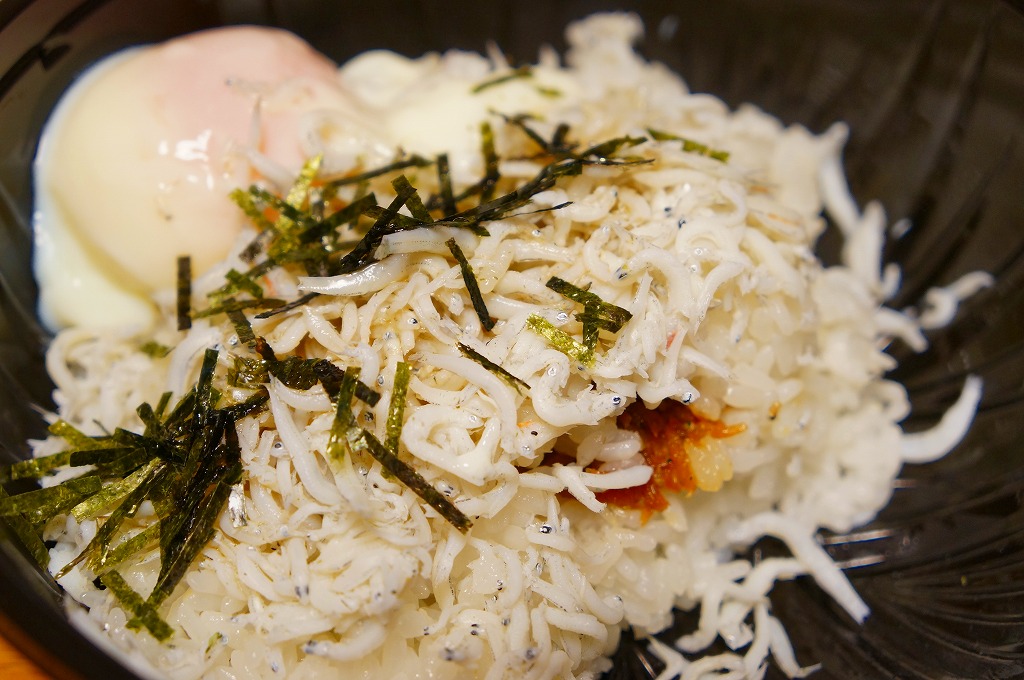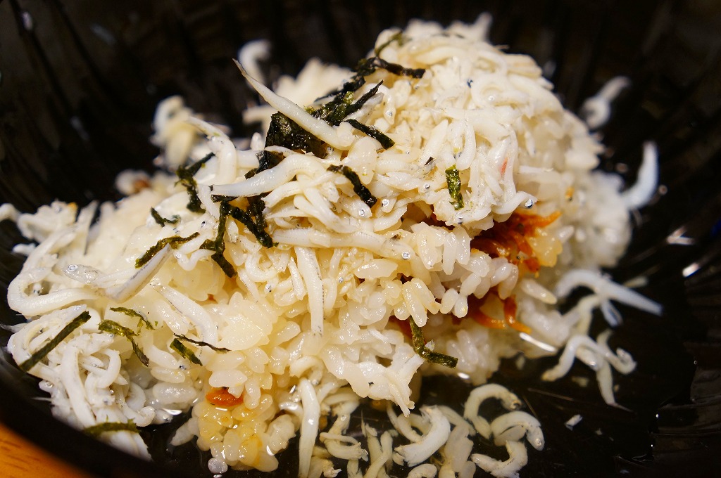 2013(平成25)年1月の京王百貨店の駅弁大会での実演販売で発売か。丼で、シラス山椒煮を仕込んだ白御飯を釜揚げシラスで覆い、だし汁、だし醤油、小イワシの天ぷら、温泉卵、柴漬け、ワサビ菜漬を添付する。名古屋のひつまぶしのように、最初はそのままシラス御飯、次に醤油とワサビ菜でシラス丼、最後にだし汁でしらす茶漬けと、3種の味を楽しめとパッケージに書いてあるエンターテイメント駅弁。面倒だけど楽しくもある。2〜3月には現地での販売もされたようだが、定着しなかった模様。