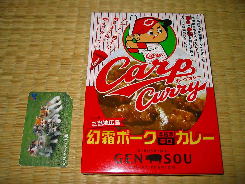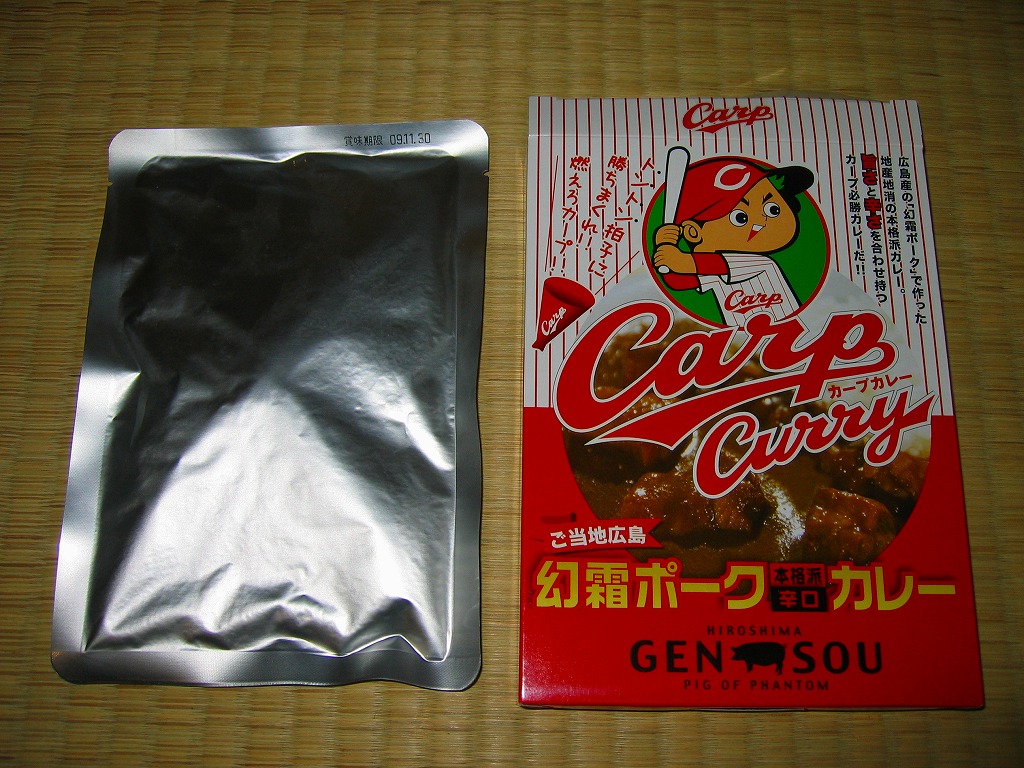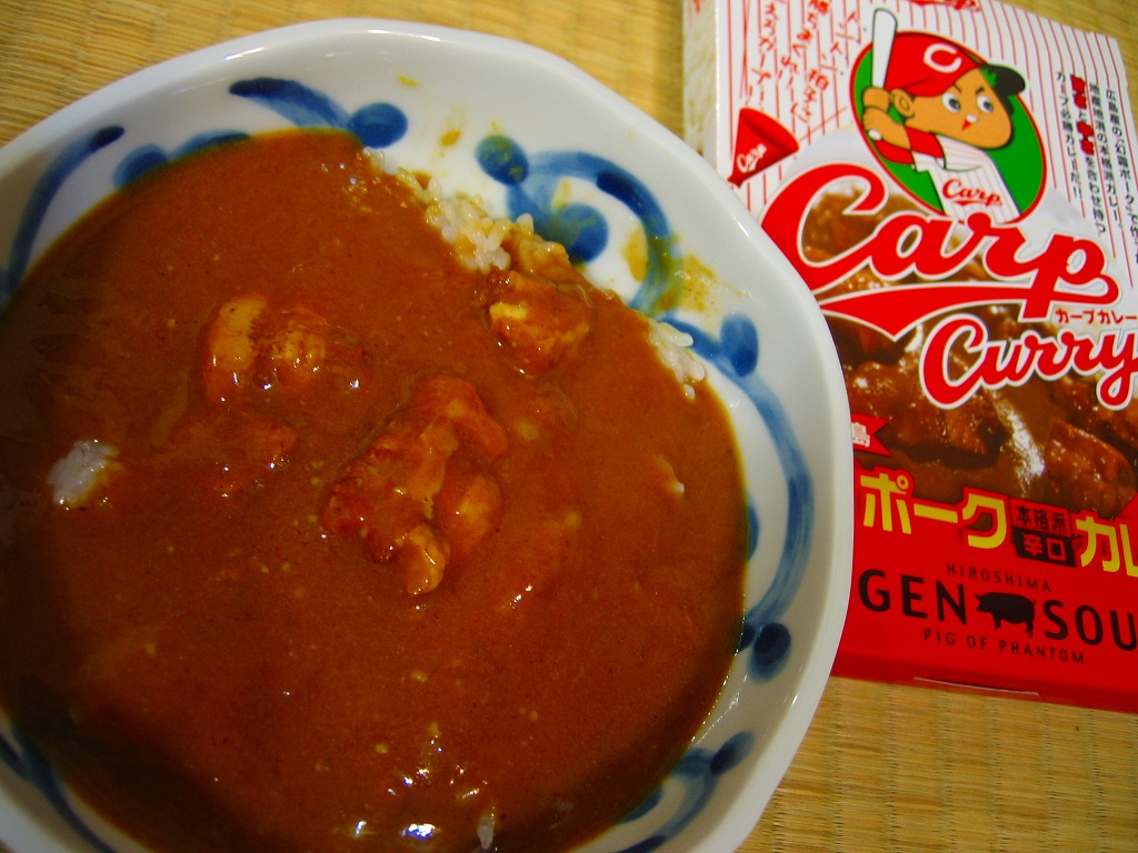内容量は200グラム。豚肉の分量が寂しいが、レトルトカレーで見本写真ほど肉が入っているはずはない。風味はなんとなく価格相応、カープファンならパッケージで買っておきたい応援商品。売れ行きが良かったのか、2009年のペナントレースと広島市民球場の移転新築に合わせて、新たなパッケージデザインで再登場している。「ご当地広島かき本格派辛口カレー」も存在。