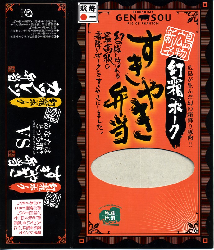 秋冬の駅弁大会シーズンに向けた、2007(平成19)年秋の新商品で、上記の駅弁「幻霜ポークすきやき弁当」とともに発売。長方形の容器に透明なふたをして、あおり文句いっぱいの窓開きボール紙枠にはめるという、催事場での見栄えを重視したと思われるパッケージ。