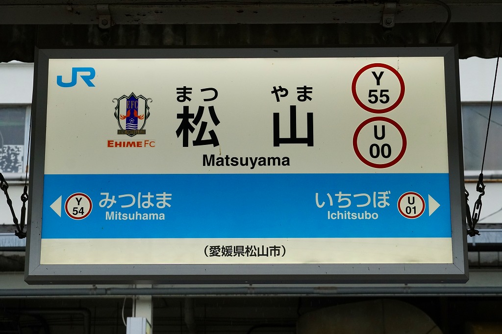 岡山駅から特急列車「しおかぜ」で3時間弱。松山市は愛媛県の中央で瀬戸内海に面した、人口約51万人の城下町で県庁所在地。四国最大の都市として商工業で栄えるほか、古湯や食文化や文学作品で年に500万人以上の観光客が訪れる観光地でもある。駅弁は1938(昭和13)年創業の駅弁屋が2018年4月に事業を停止、以後は岡山駅の駅弁屋がキヨスクへ弁当を卸す。1927(昭和2)年4月3日開業、愛媛県松山市南江戸1丁目。
