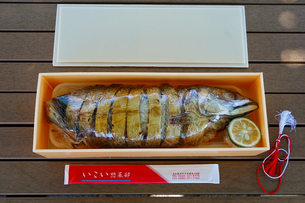 「清水サバ姿寿司焼」とも。JR四国の駅弁キャンペーン「四国の駅弁選手権2014」の実施に合わせて、2014(平成26)年11月の発売。あるいは従前の「サバ姿寿司」(1,000円)のリニューアル。3日前までの注文が必要な、完全予約制の駅弁。